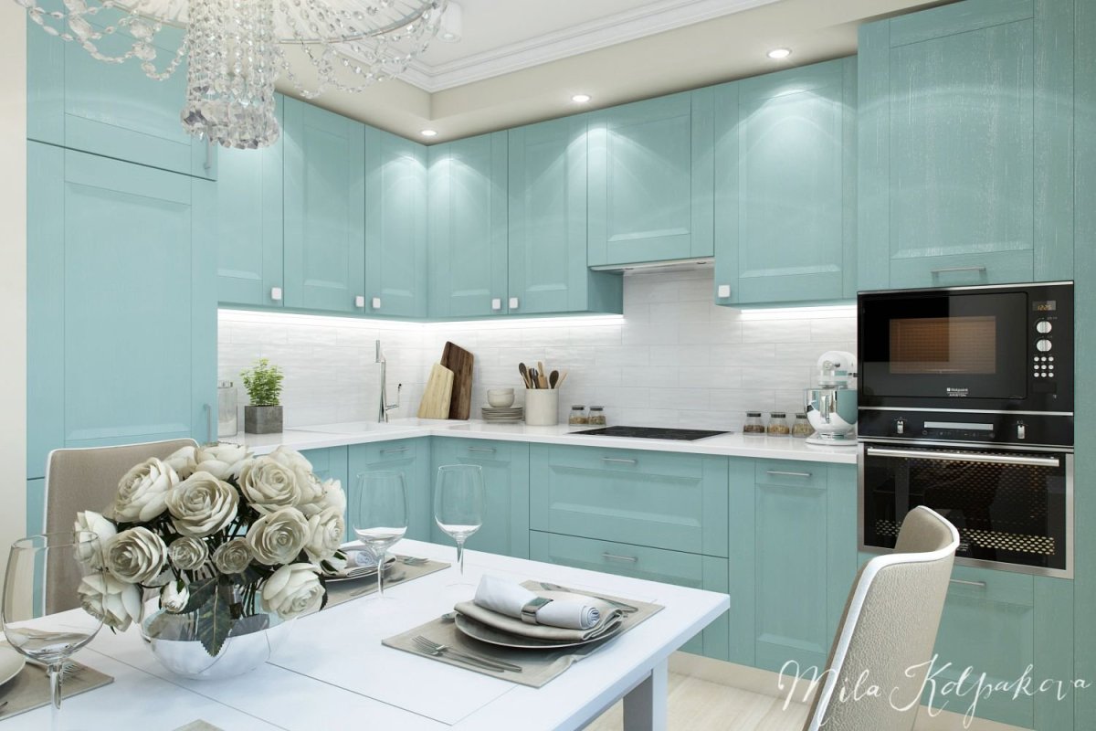 3. Кухня нежно бирюзового цвета