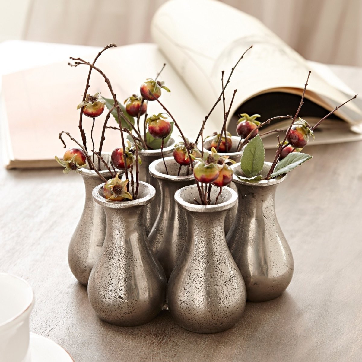 8. Металлическая ваза для цветов в интерьере