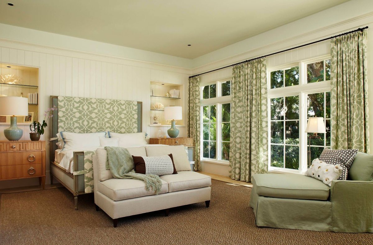 29. Шторы фисташкового цвета в спальне