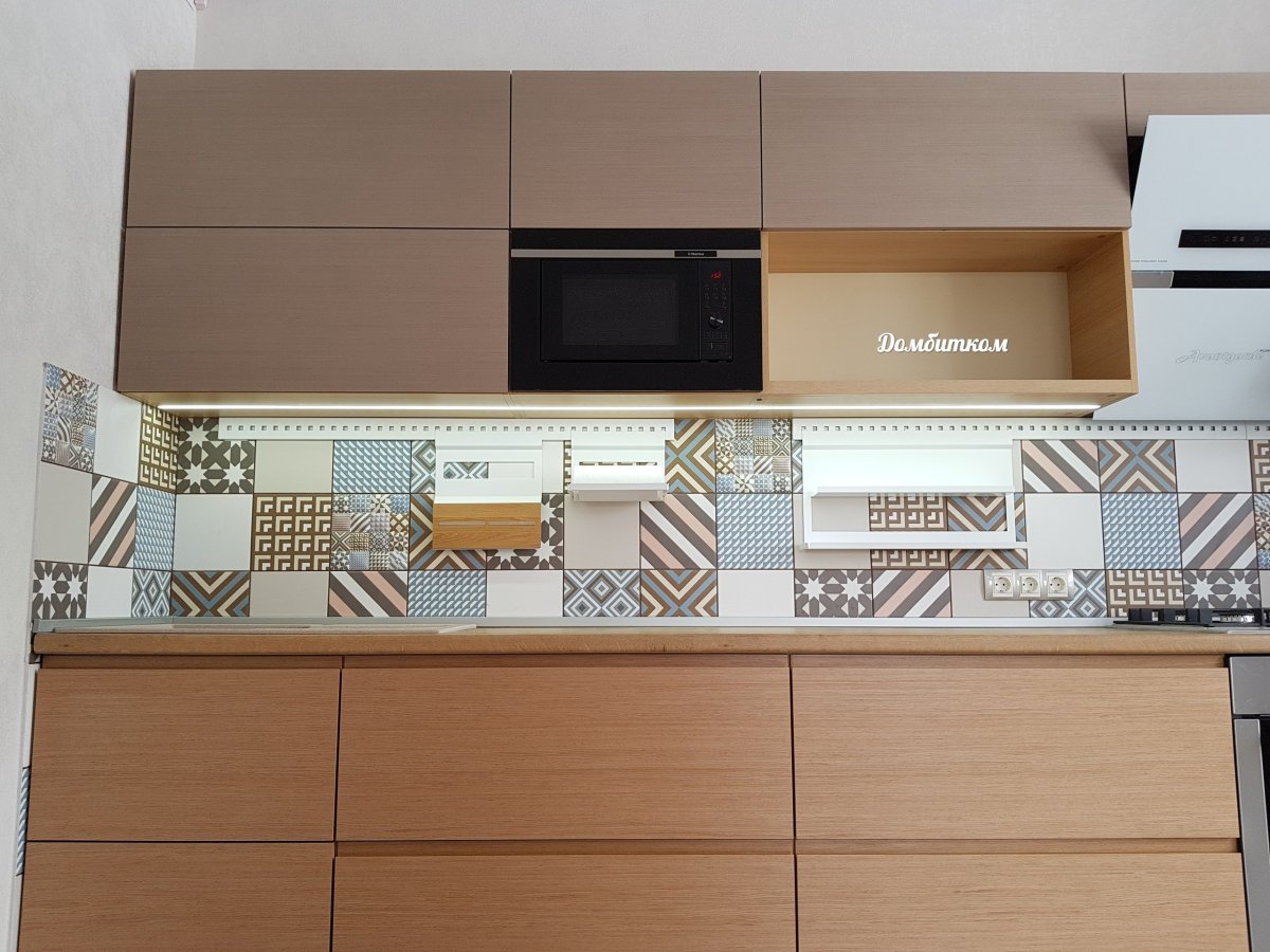 51. Кухня фасады шпон с интегрированной ручкой