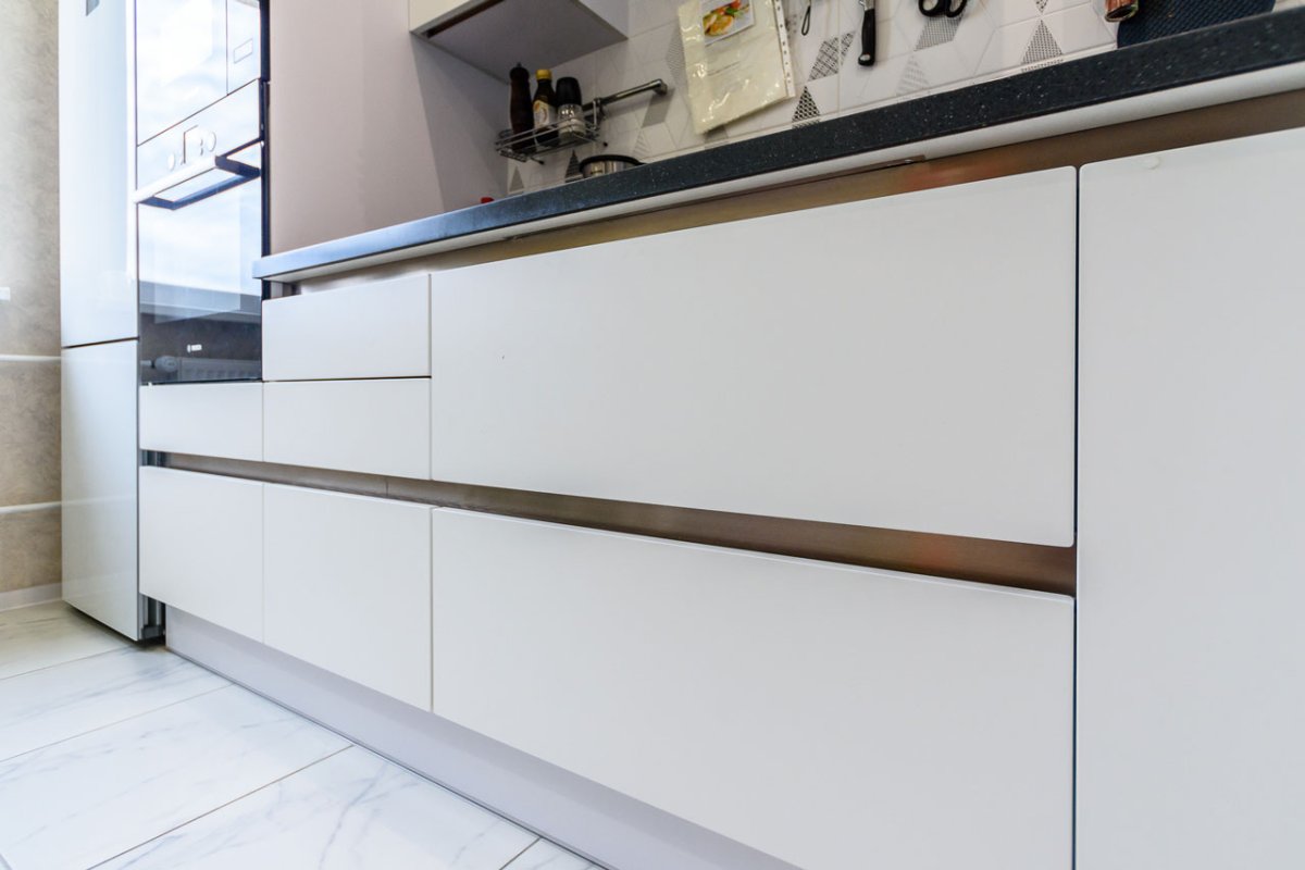 8. Белая кухня с интегрированными ручками
