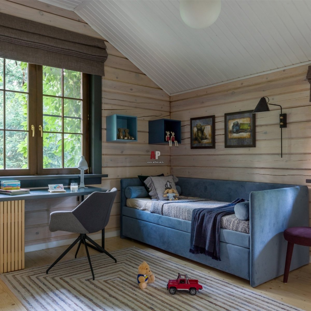 23. Потолок мансарды из имитации бруса и крашенные стены