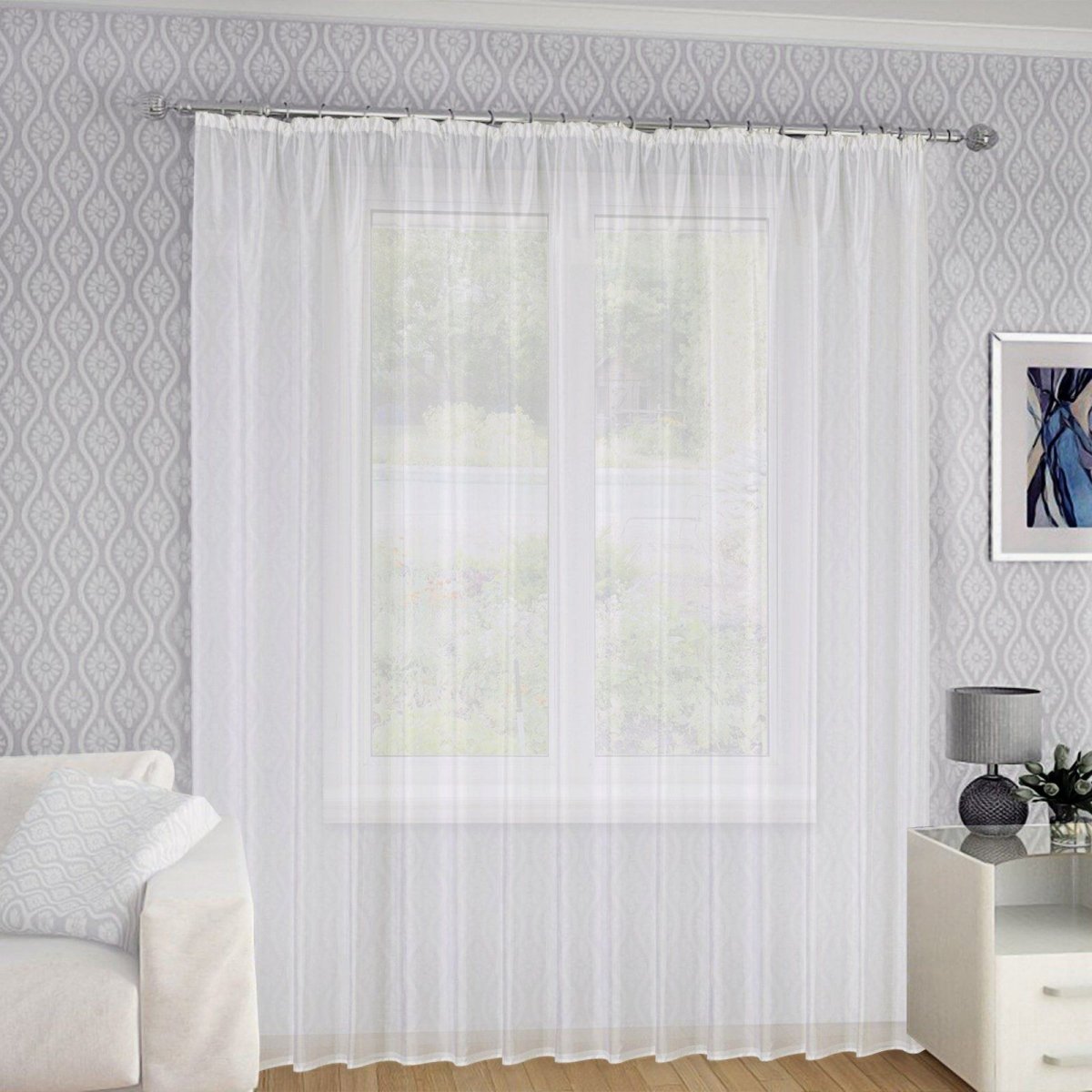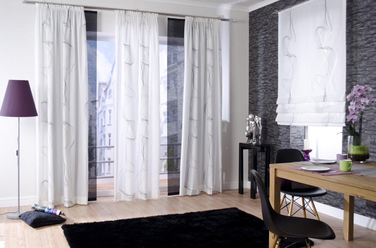 Фото: Белые шторы в гостиной