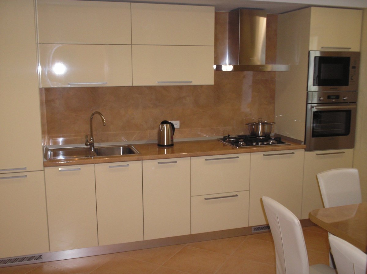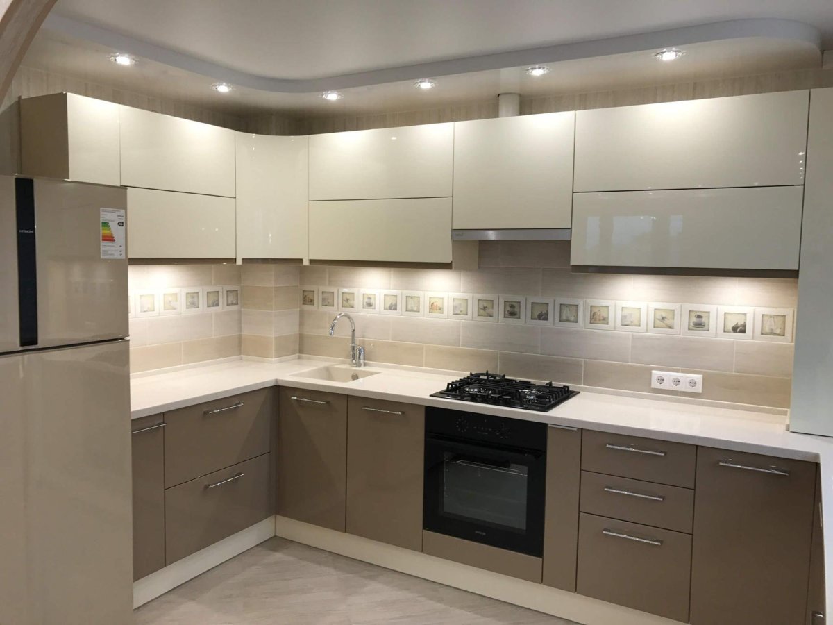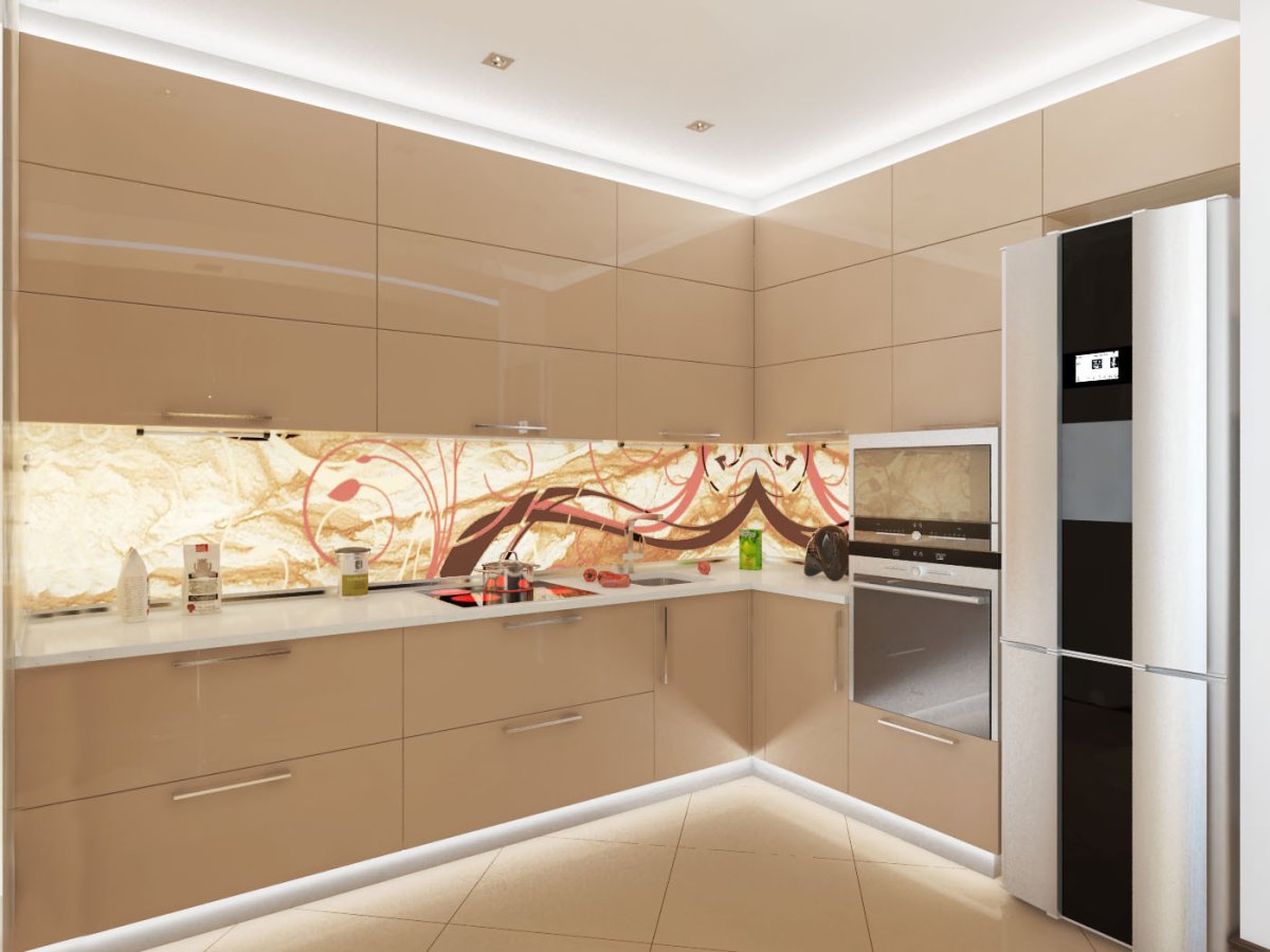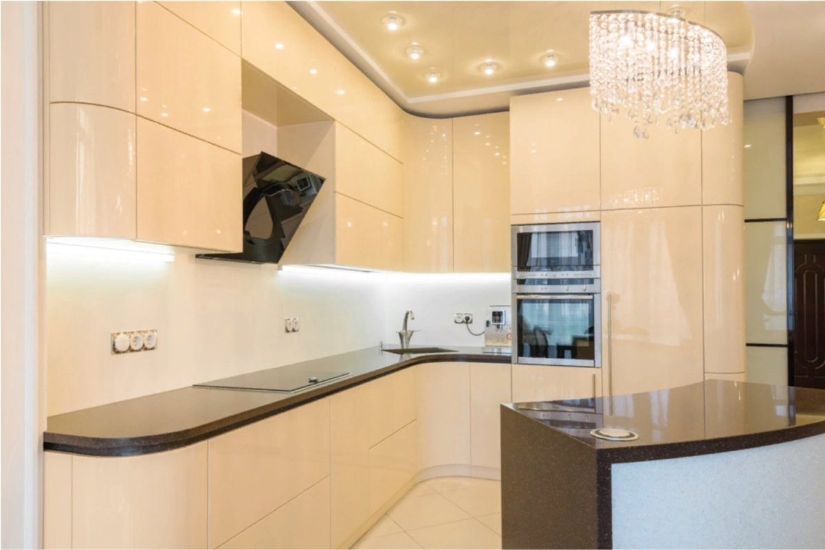 4. Бежевая глянцевая кухня