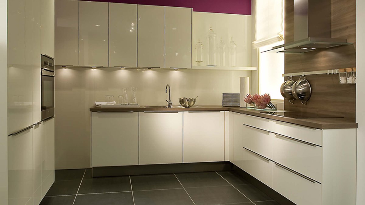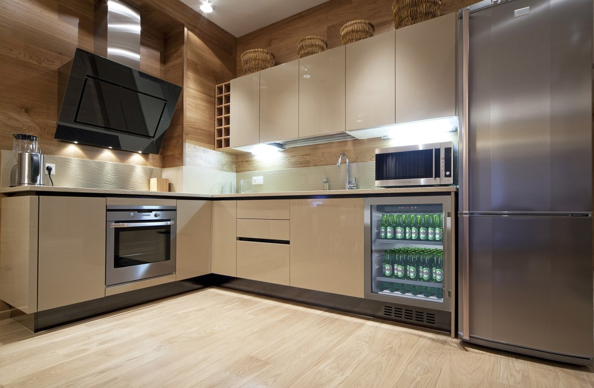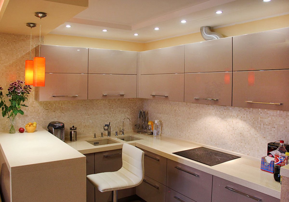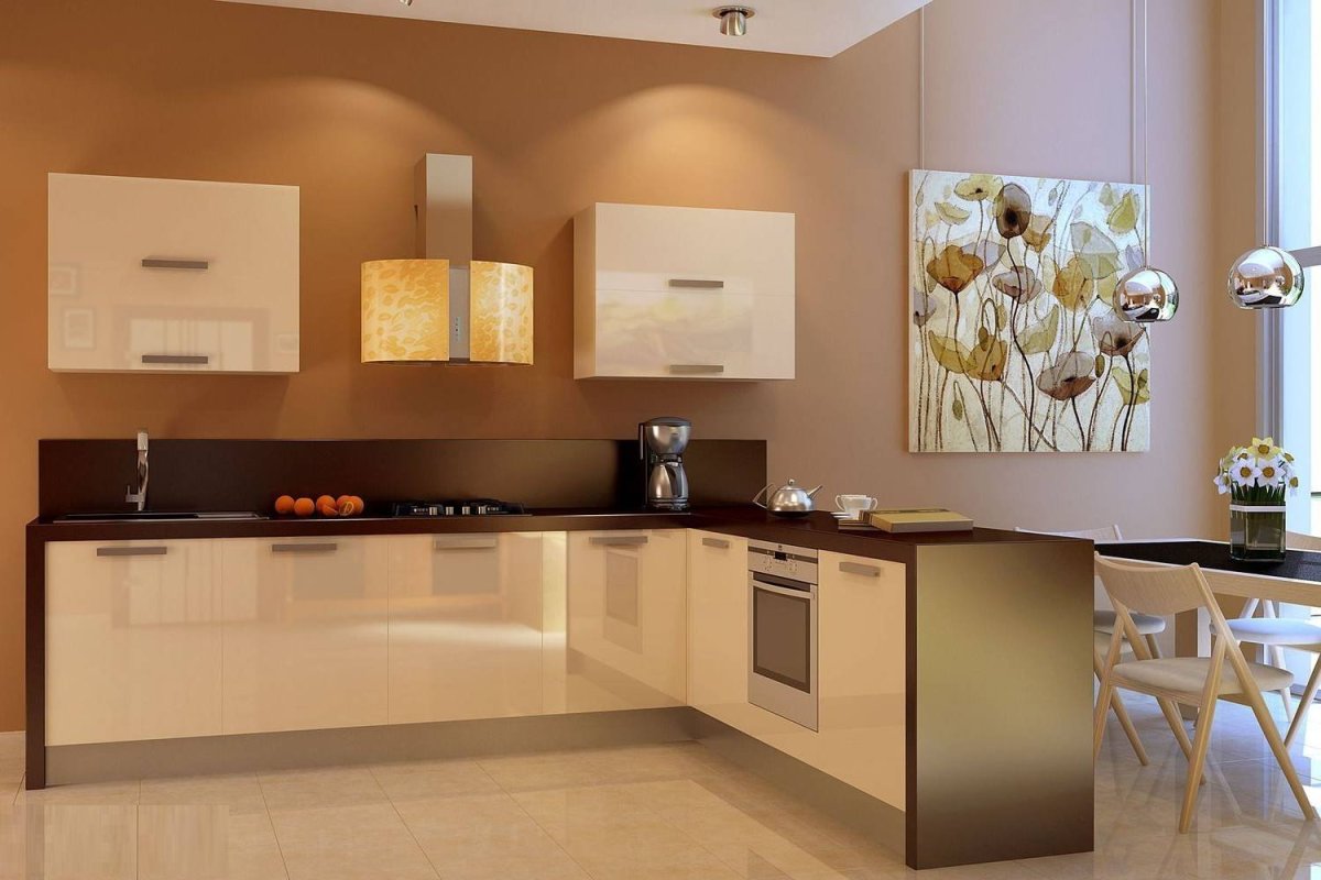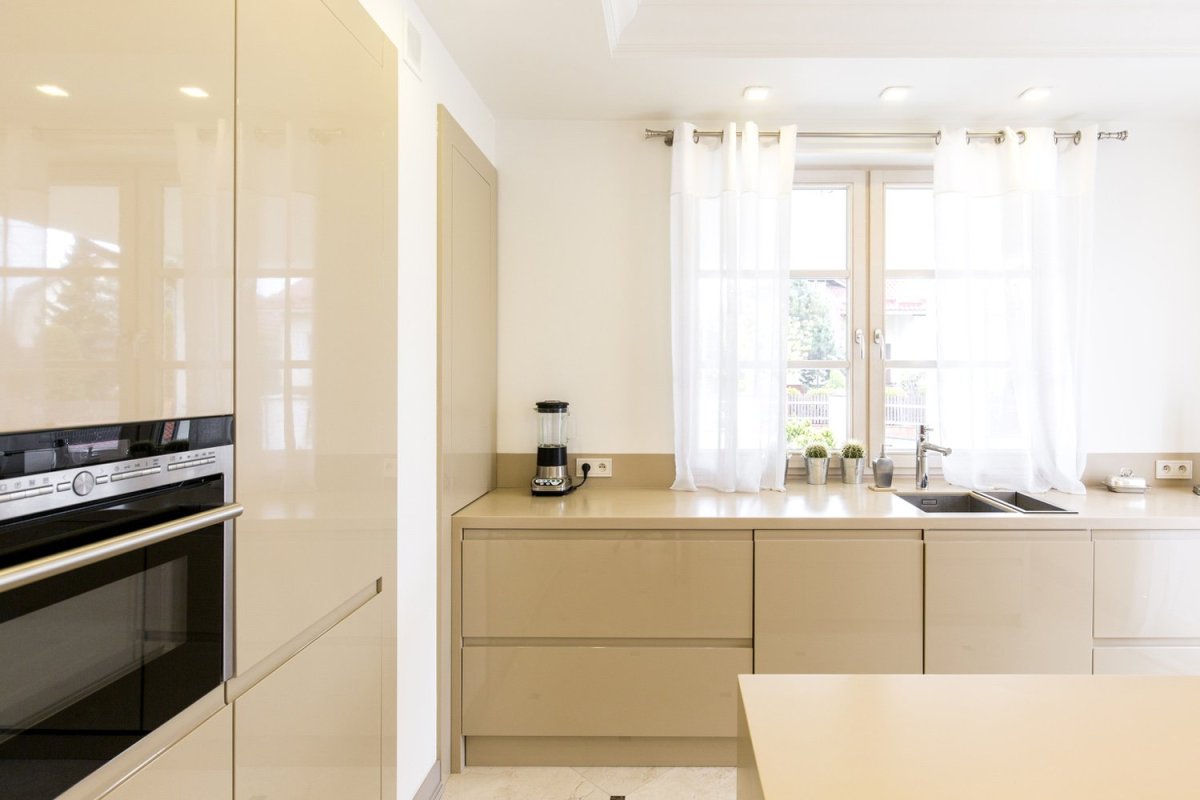 4. Бежевая глянцевая кухня