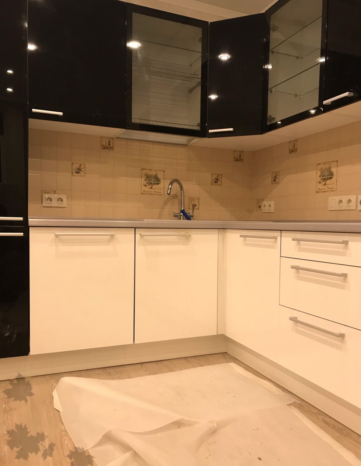 39. Черно бежевая кухня глянец