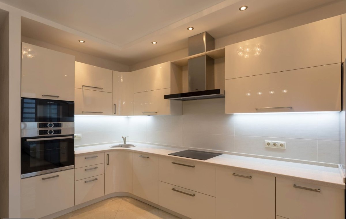 Фото: Молочная глянцевая кухня