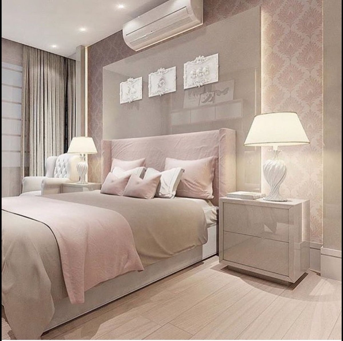 22. Пудровые оттенки в интерьере спальни