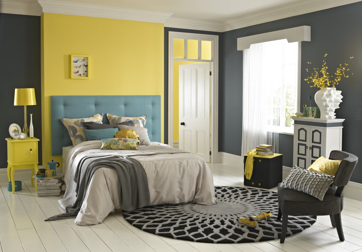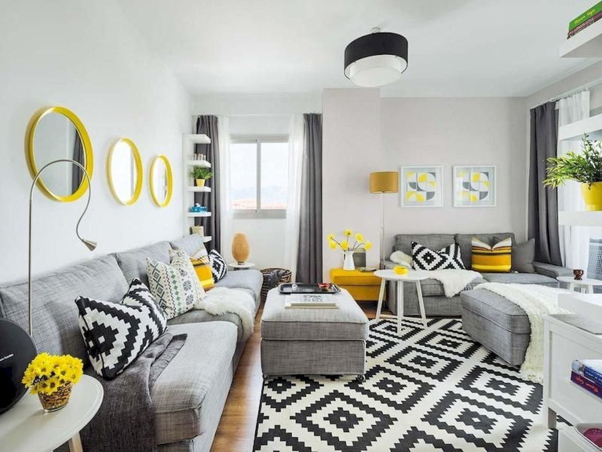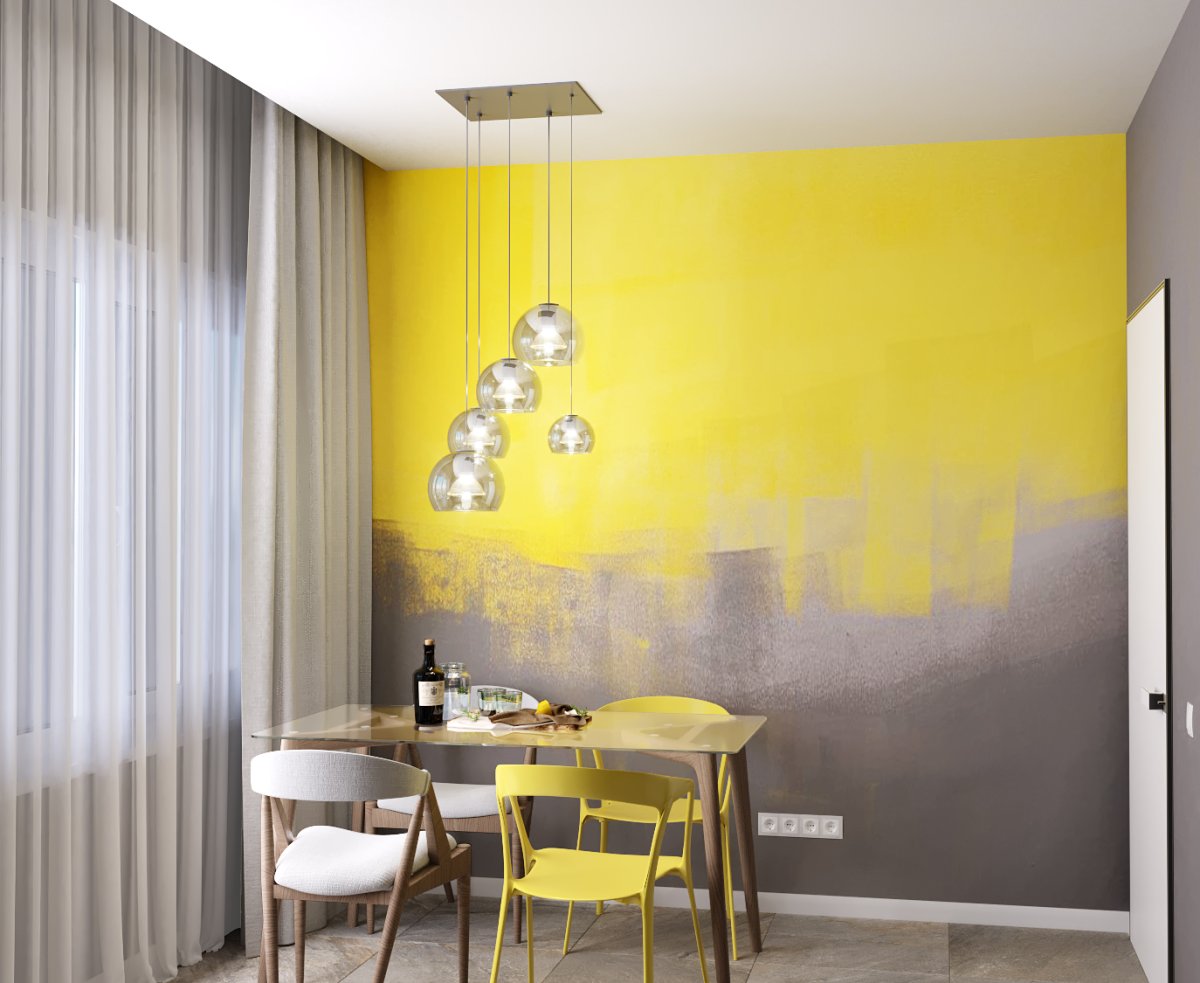 43. Серый и желтый в интерьере