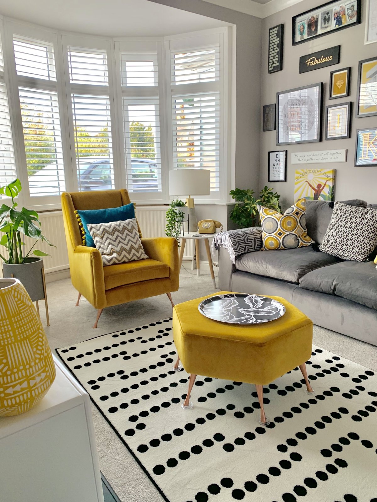 39. Аксессуары серый-желтый в интерьере