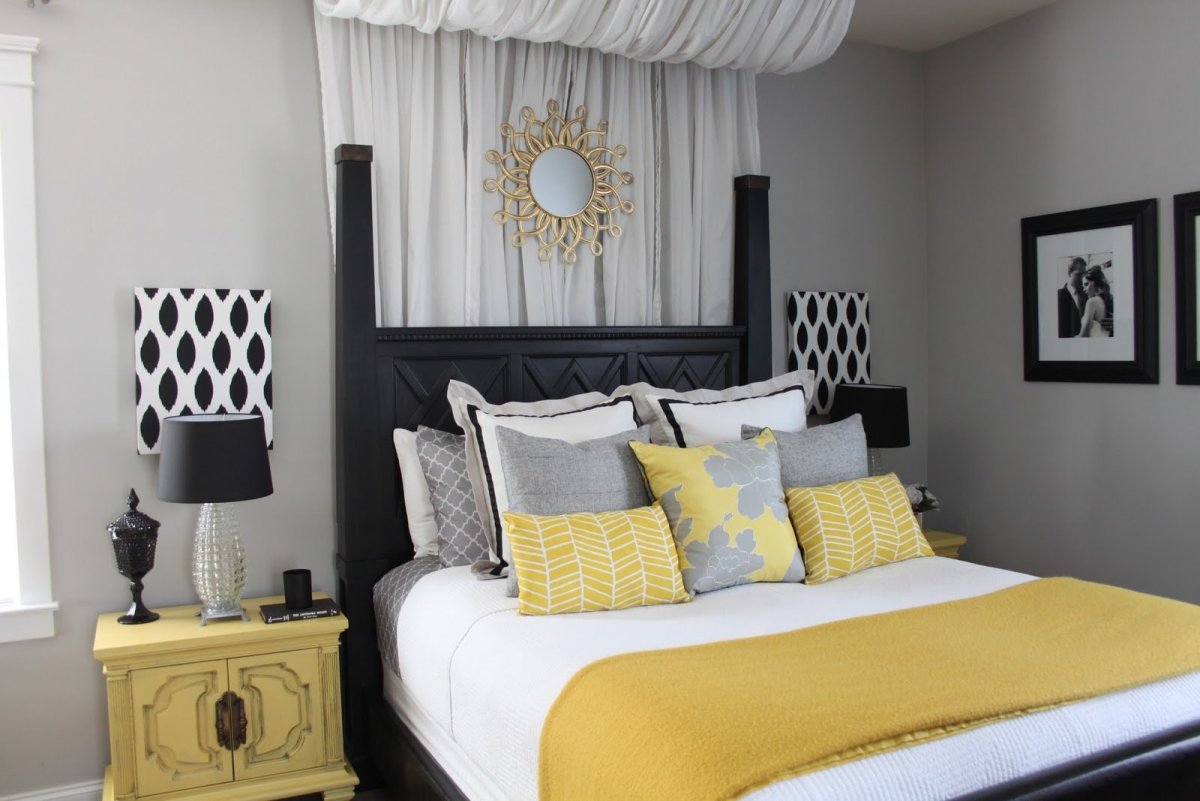 21. Спальня в серо желтых тонах