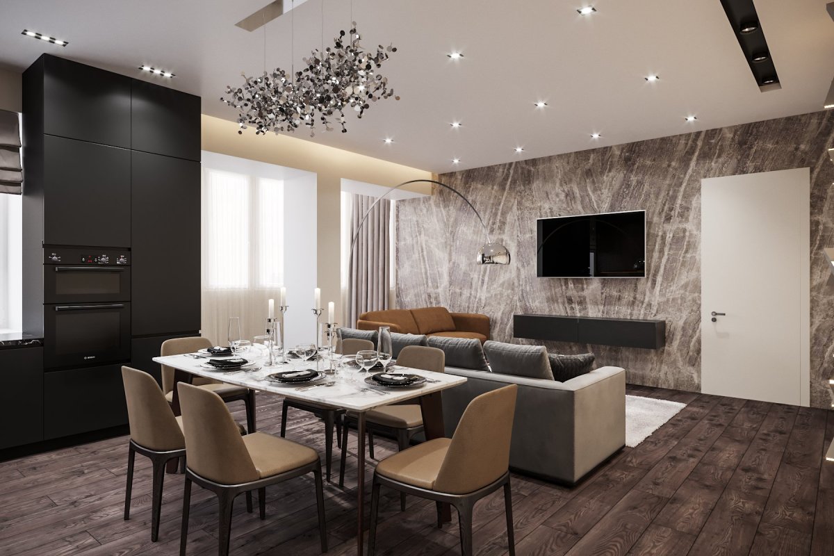 64. Гостиная столовая в современном стиле