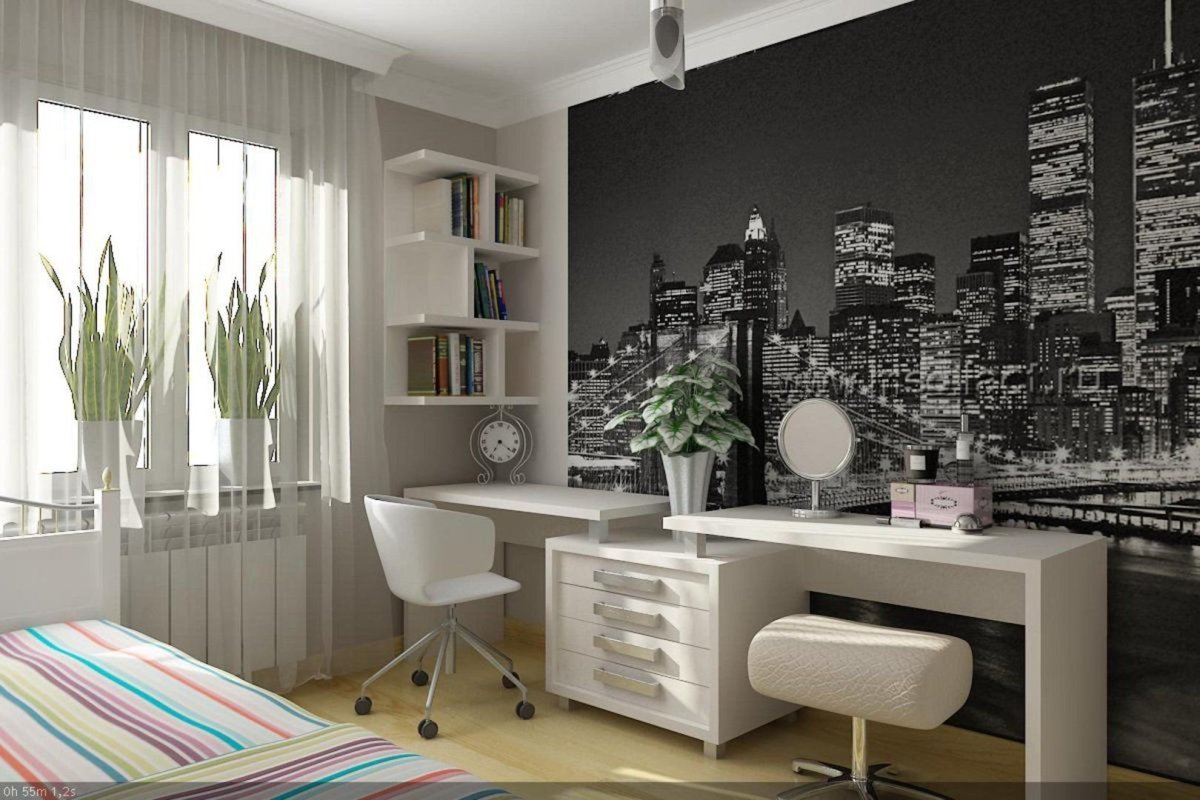 24. Бело черная комната для подростка