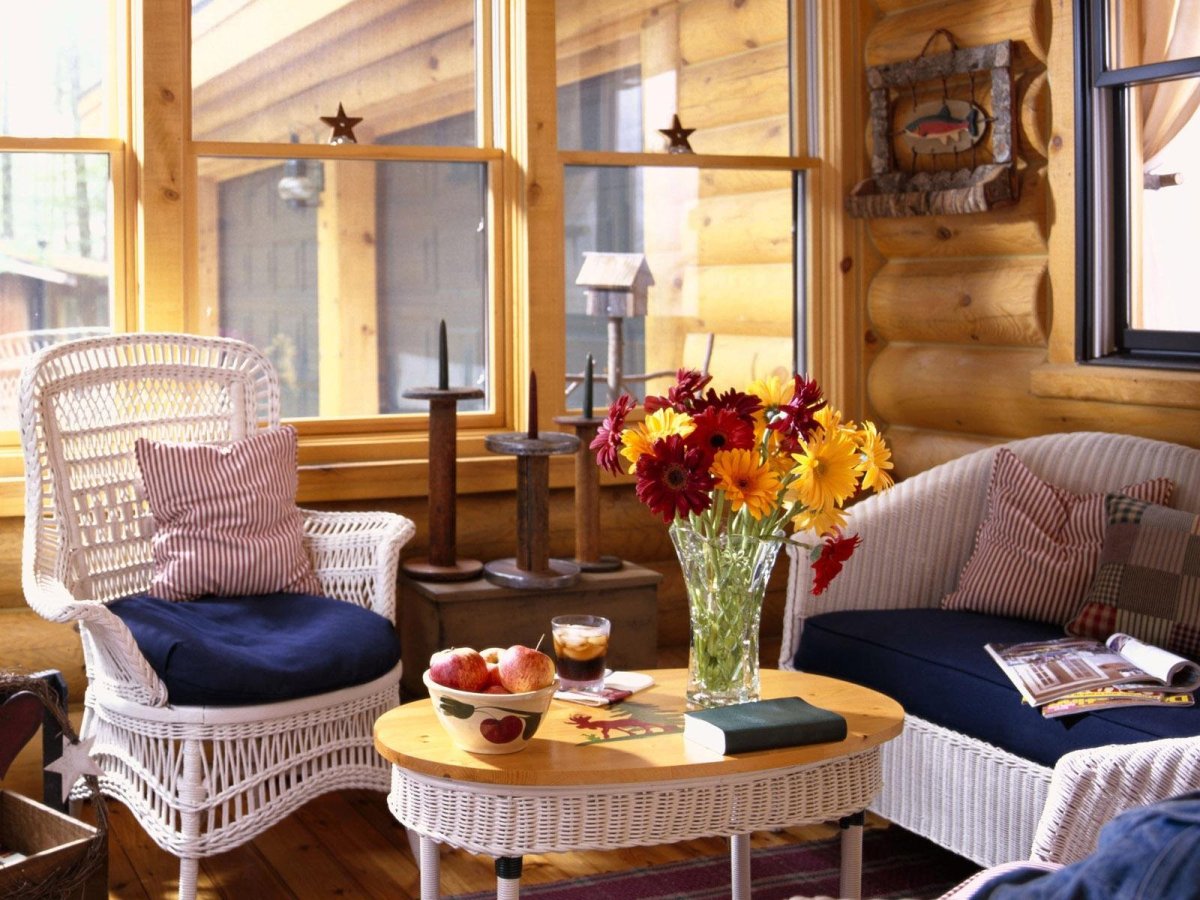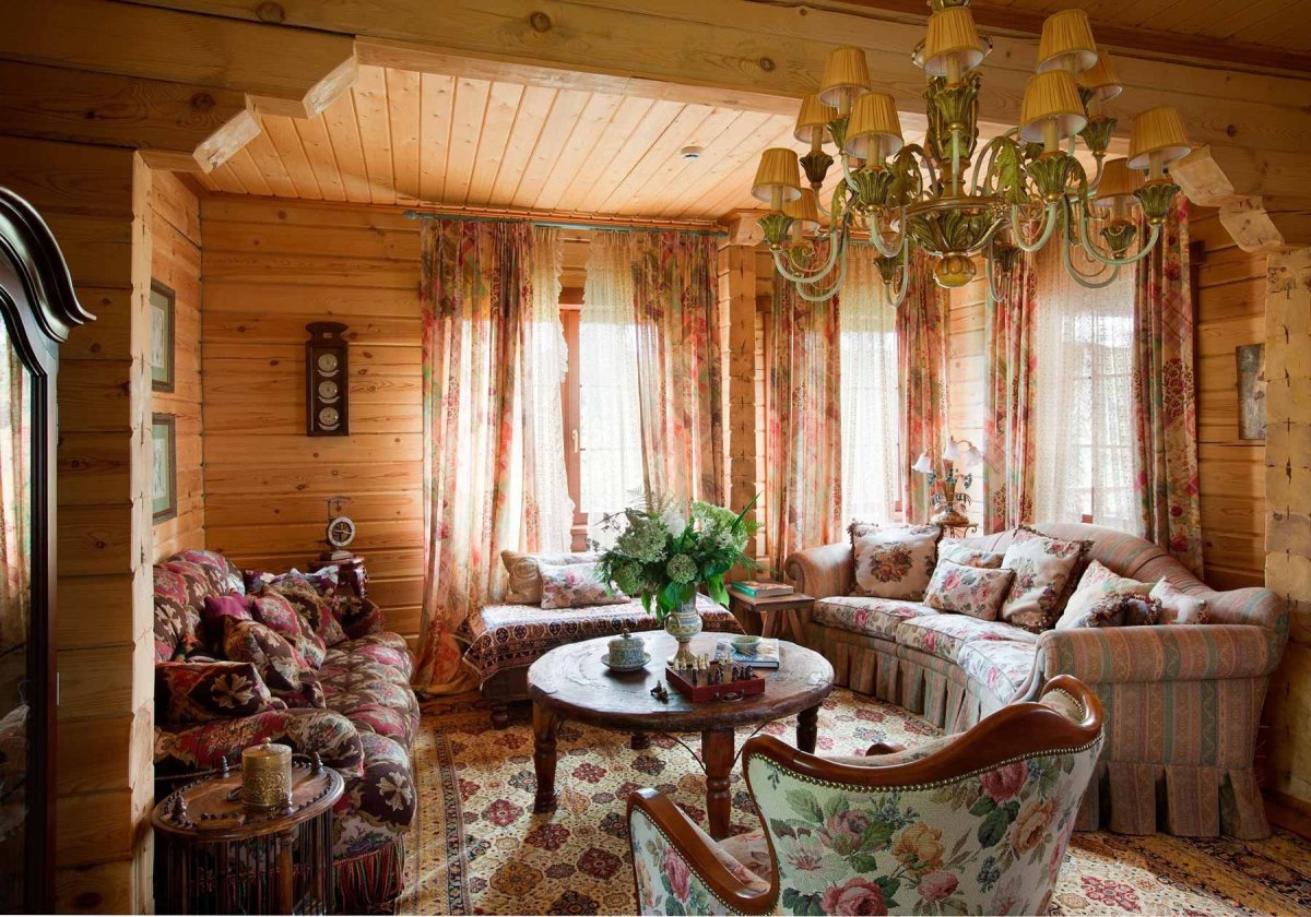 Фото: Гостиная Прованс Кантри в бревенчатом доме
