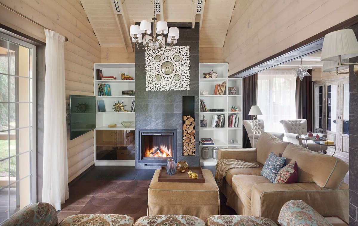 Фото: Гостиная Прованс Кантри в бревенчатом