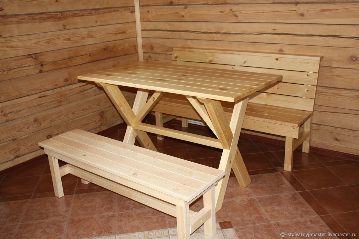 24. Деревянные столы и лавки для бани