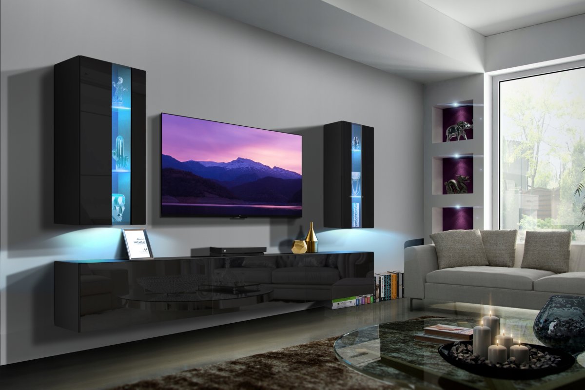 54. Стенка (гостиная) blade4, черный / глянец "сахара"