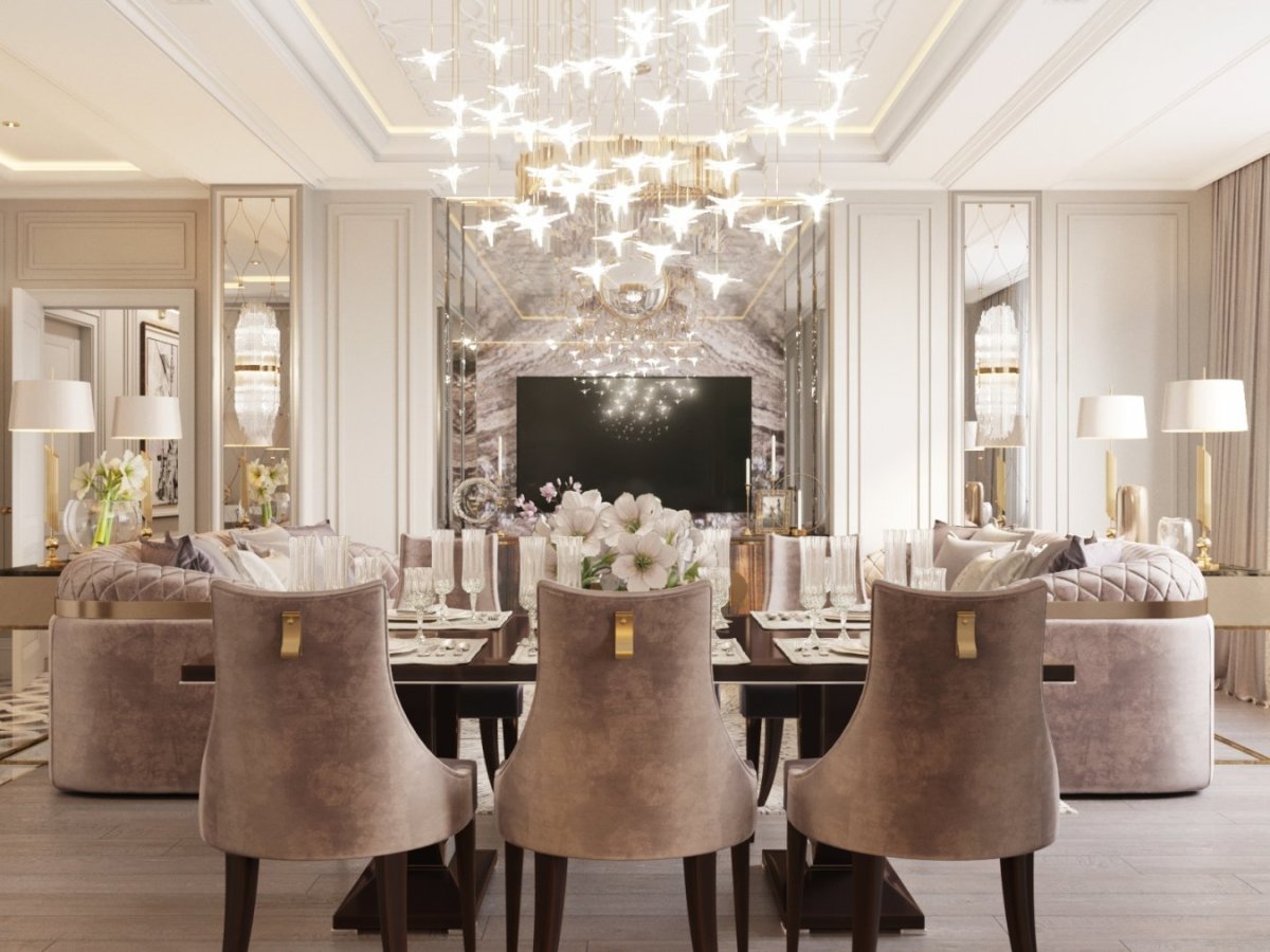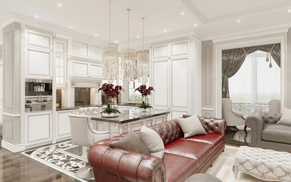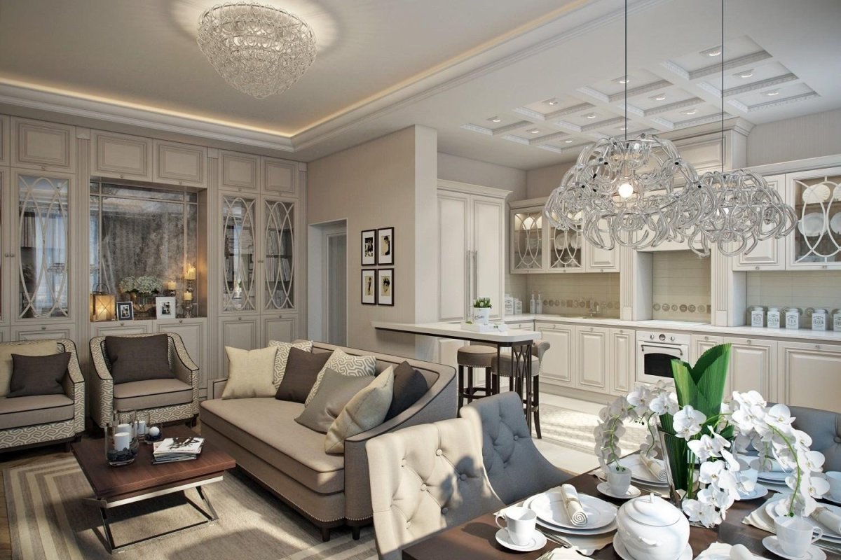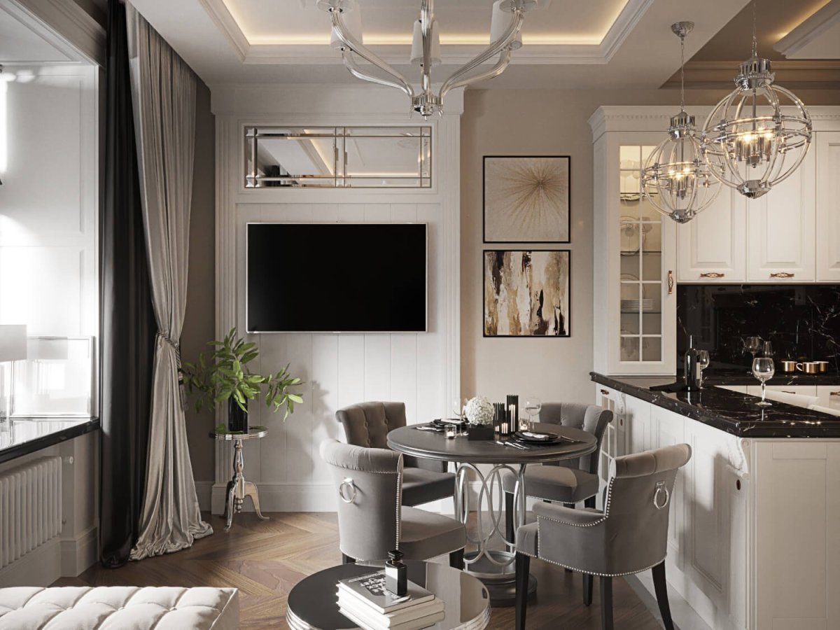 36. Неоклассика в интерьере кухни гостиной
