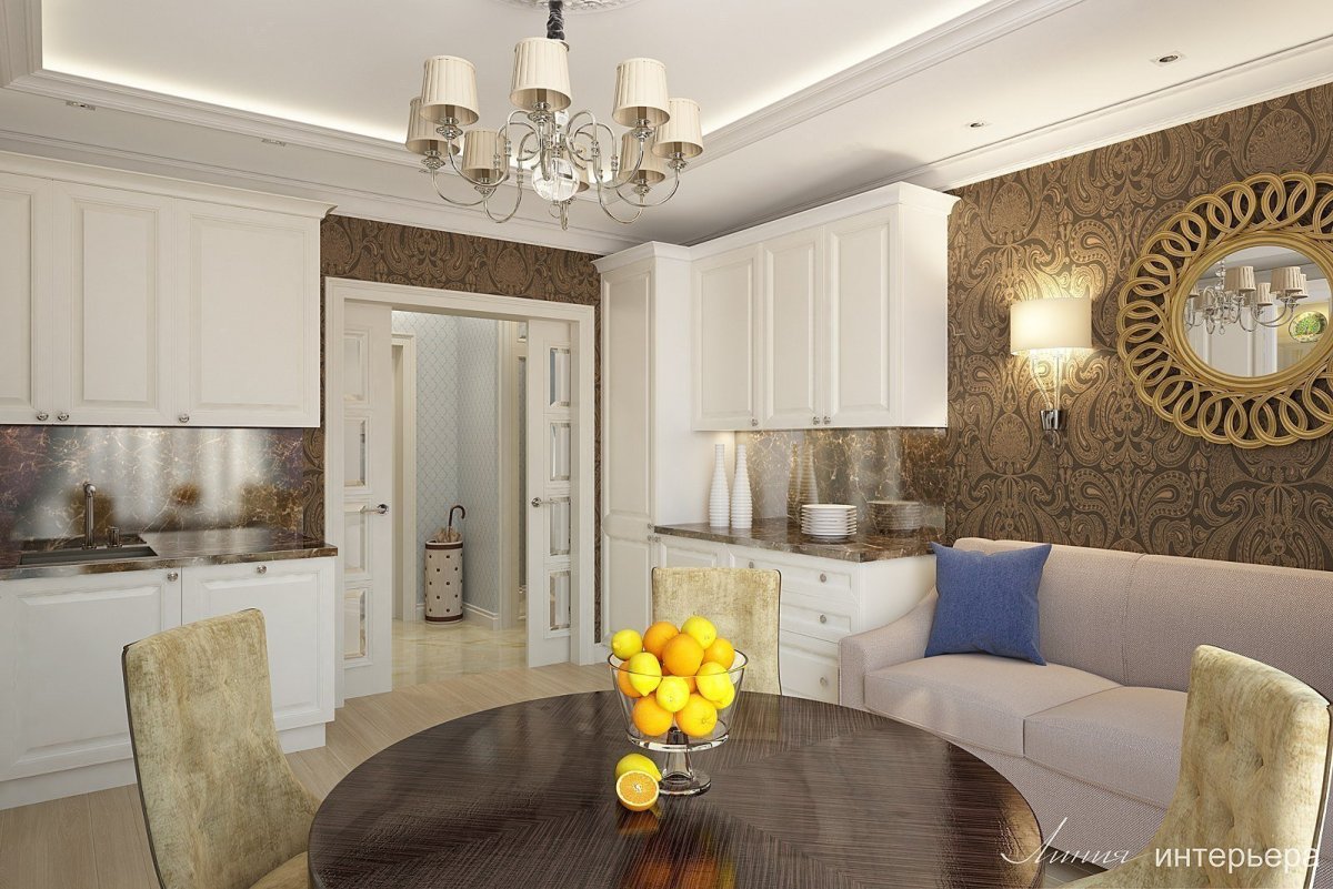 9. Кухня-гостиная Неоклассика 20 кв метров