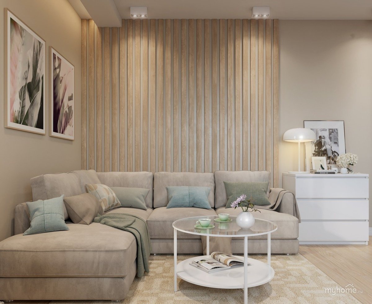 23. Гостиная с бежевыми стенами