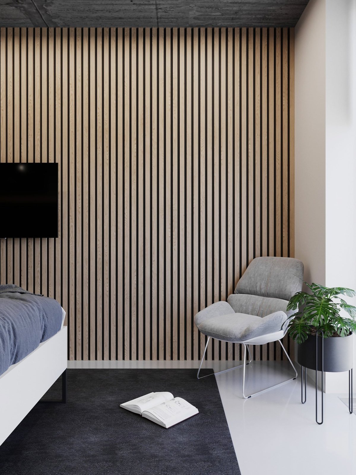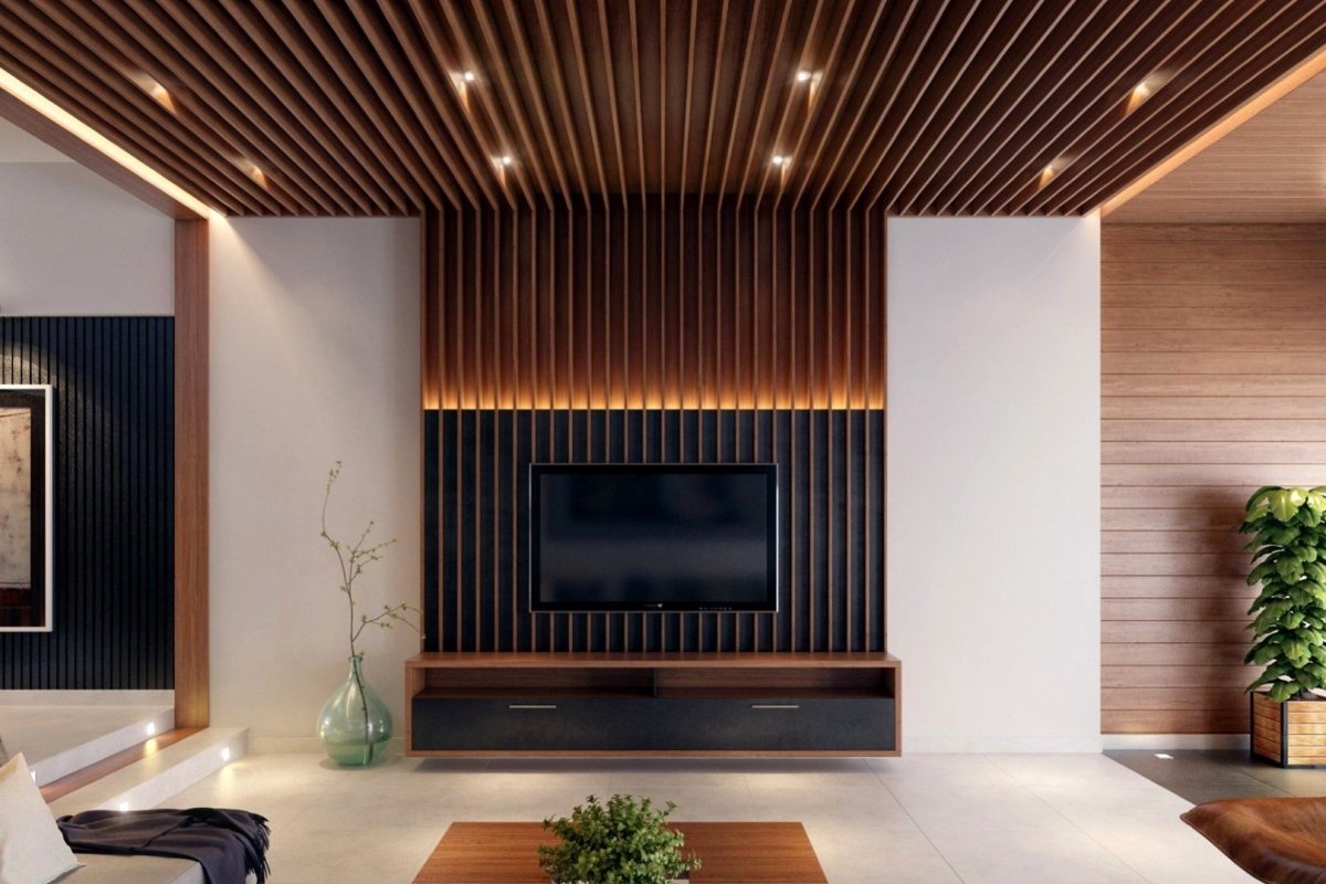 32. Гостиная с деревянными рейками