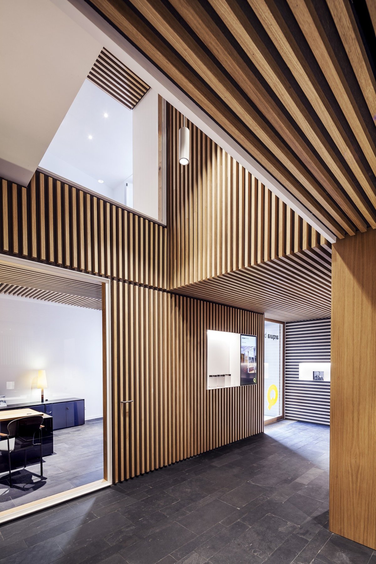 28. Прихожая с деревянными рейками