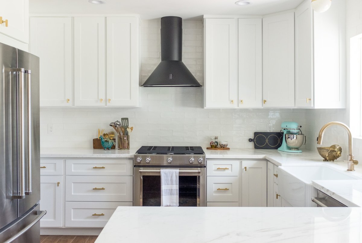 63. Черная вытяжка на белой кухне