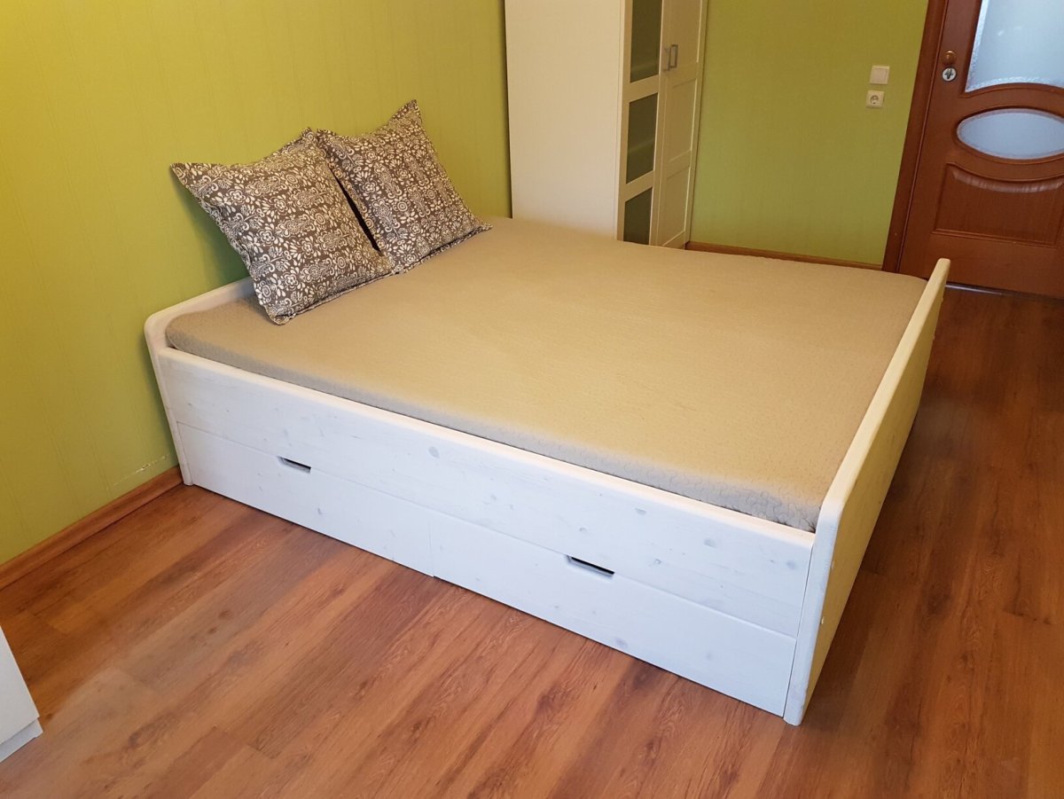 72. Кровать из мебельного щита с выдвижными ящиками