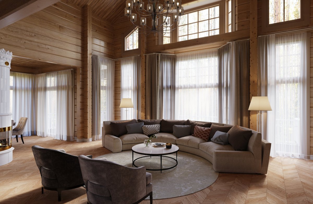 31. Интерьеры домов из клееного бруса