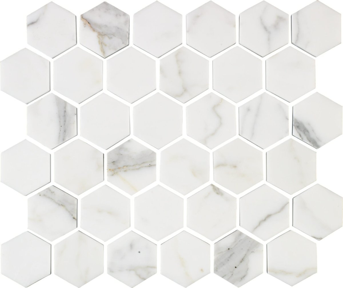 48. Calacatta полированная мозаика Гексагон 267х308 bmb8561м1