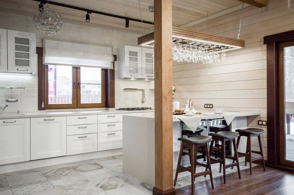 9. Интерьер кухни в доме из клееного бруса