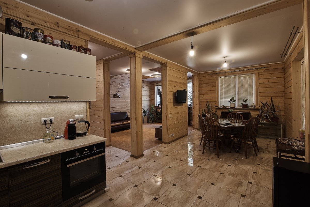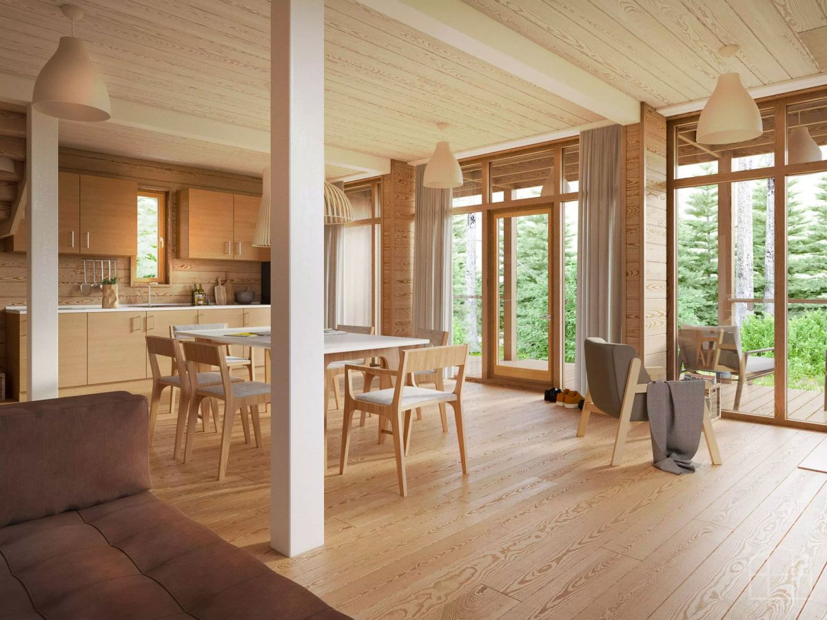 7. Дом из клееного бруса кухня гостиная интерьер