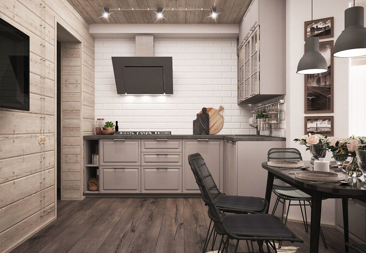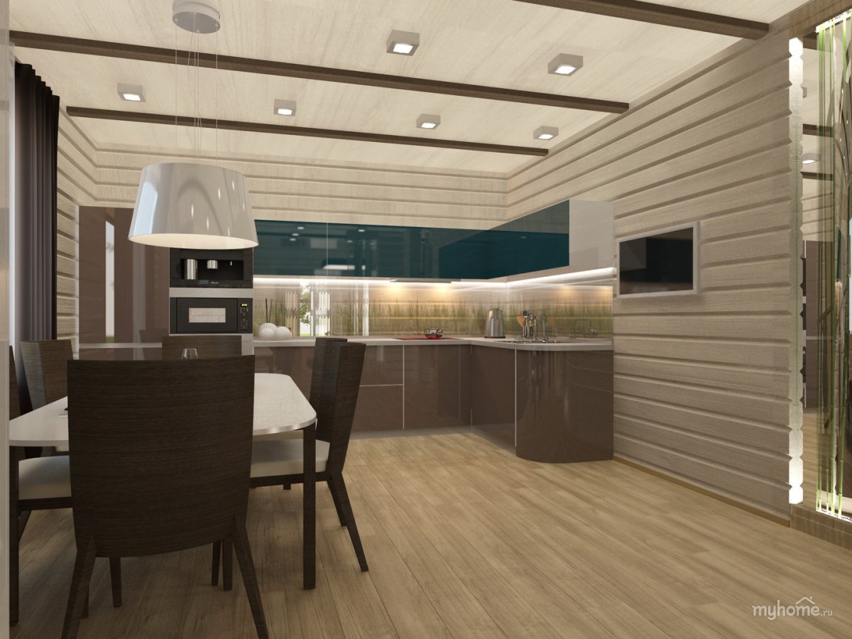 28. Кухня гостиная имитация бруса