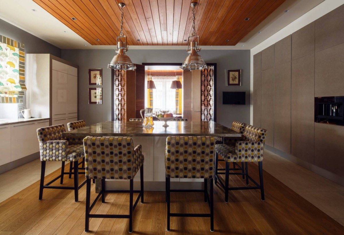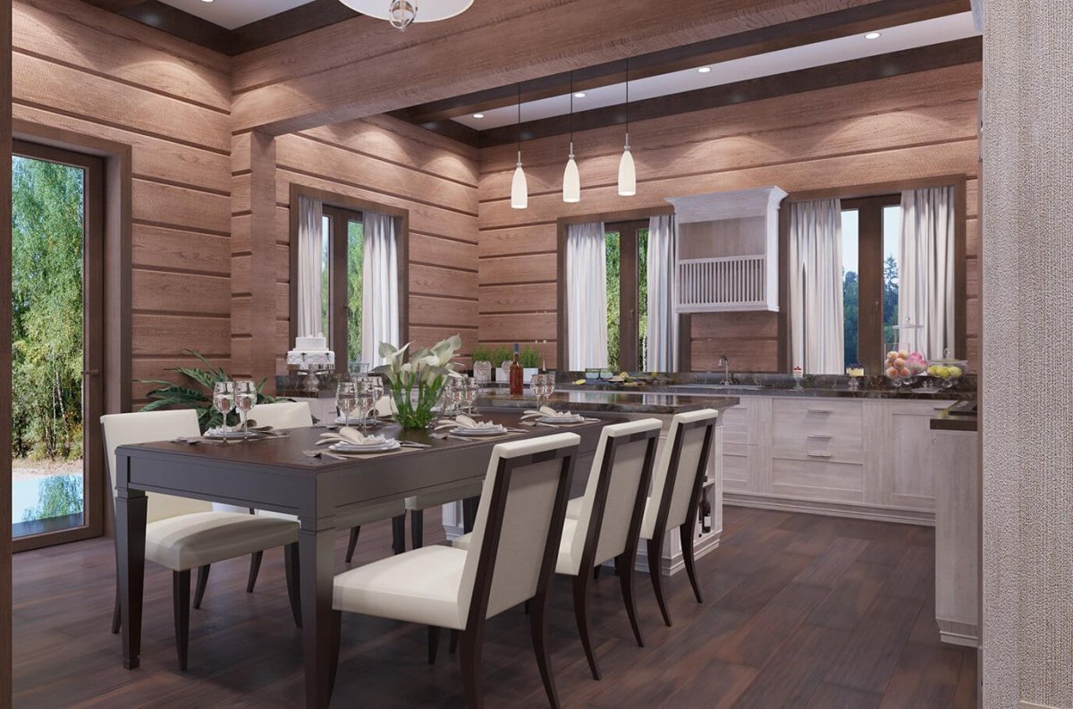 2. Имитация бруса в кухне гостиной