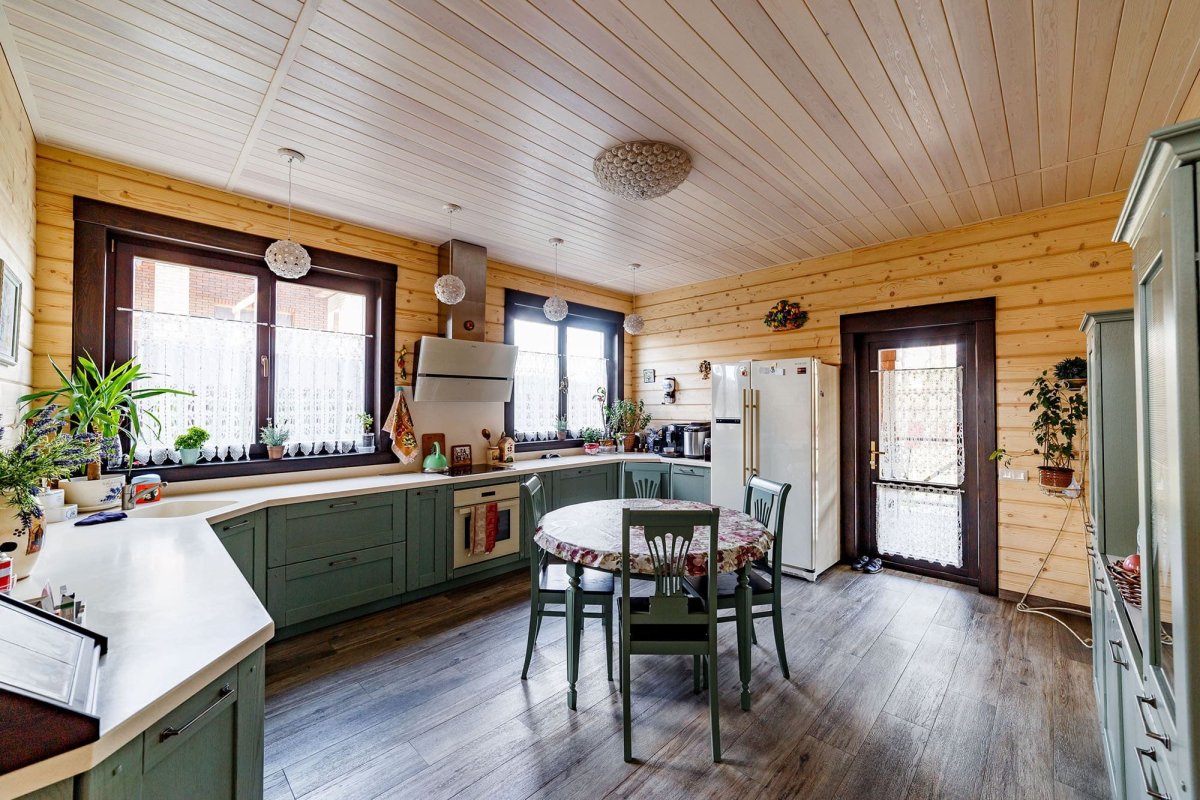 8. Кухня в загородном доме имитация бруса