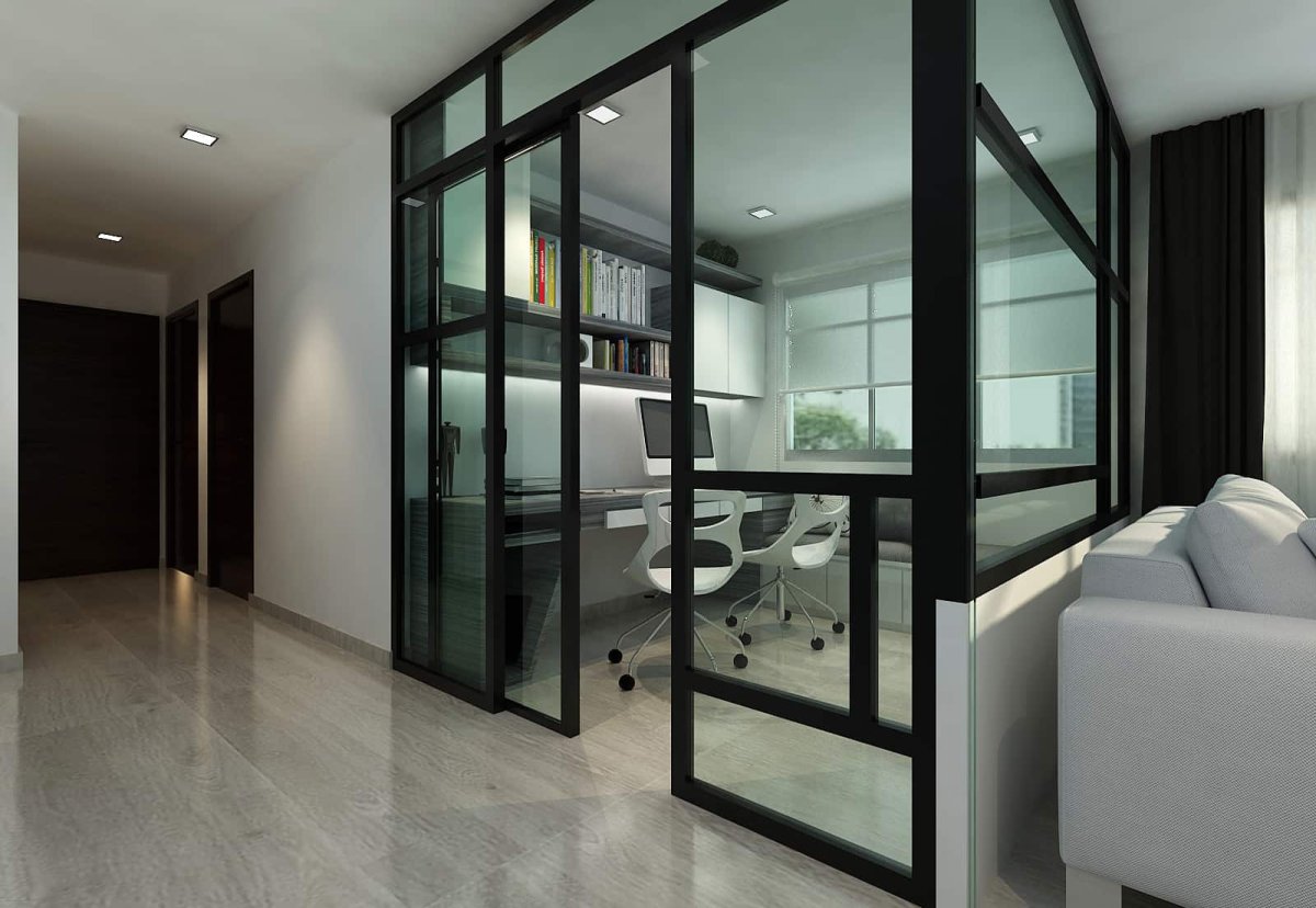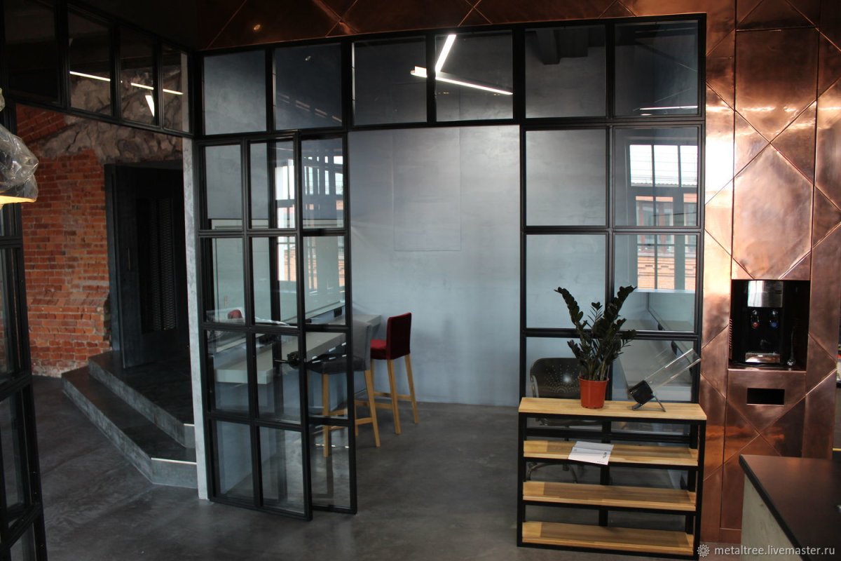 17. Стеклянные перегородки для зонирования пространства в комнате