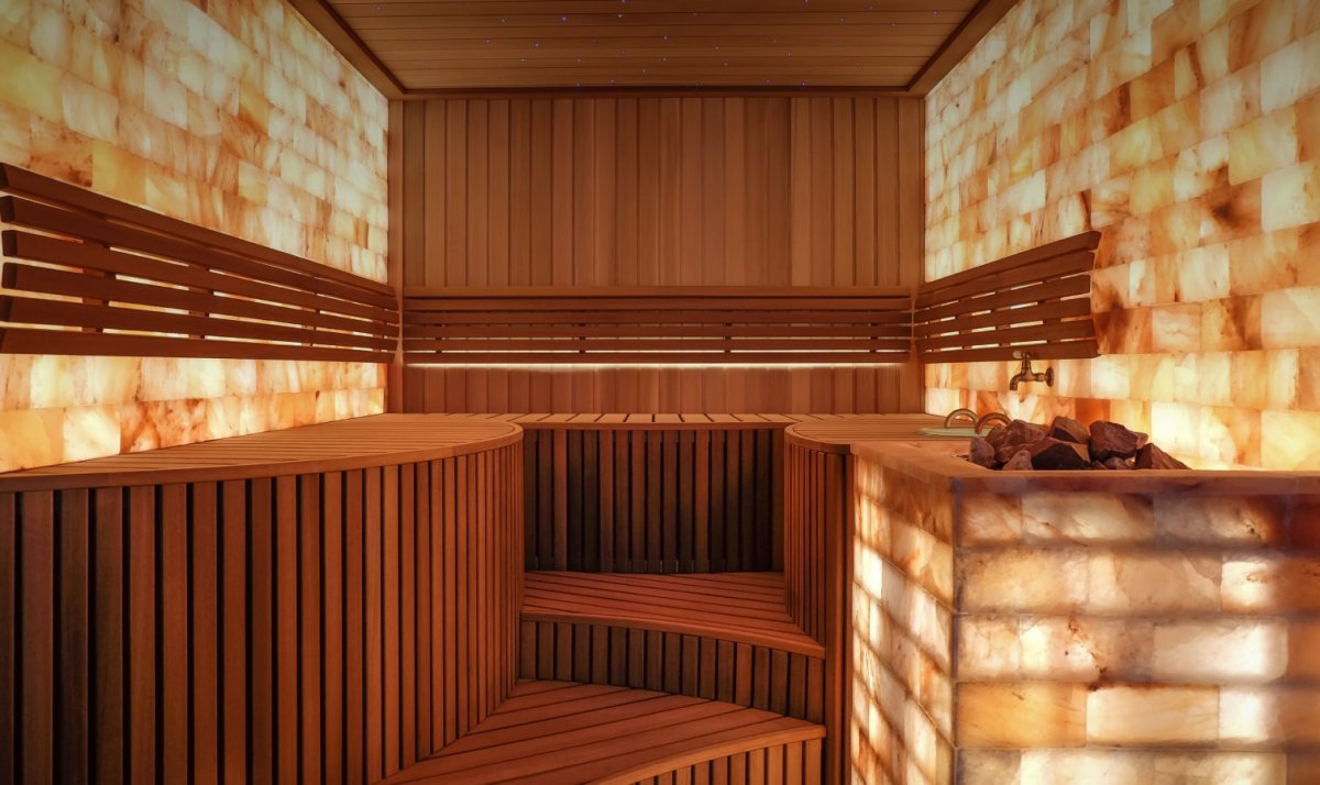 Фото: Гималайская соль в интерьере бани небольшие вставки