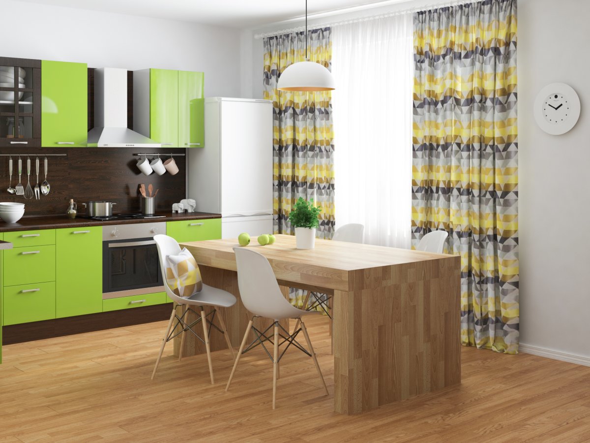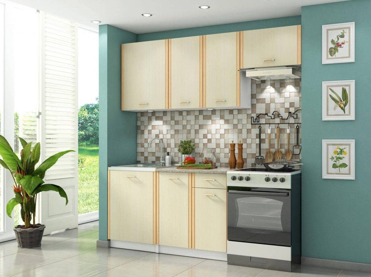 19. Обои на кухню дизайн 2020 в светлых тонах под бирюзовую кухню