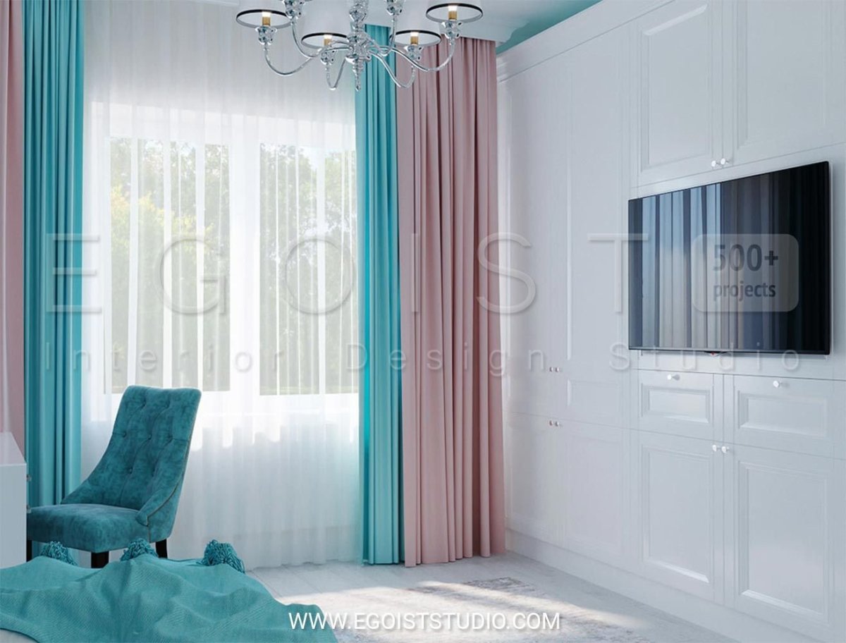20. Бирюзовые шторы в интерьере