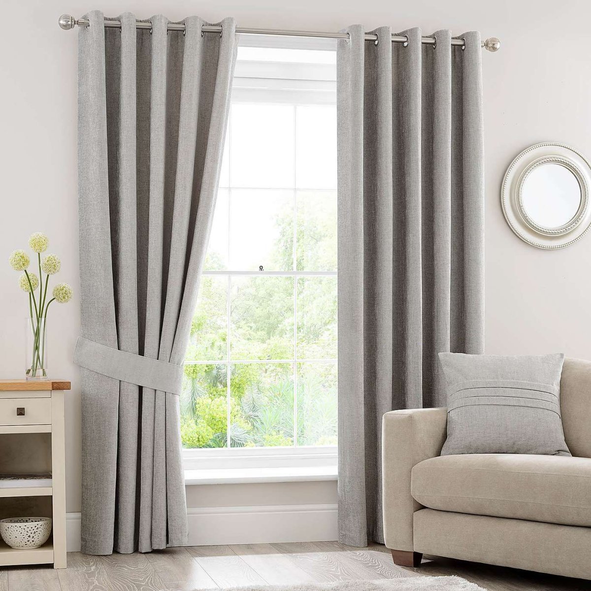 14. Серые шторы с серебристыми кольцами