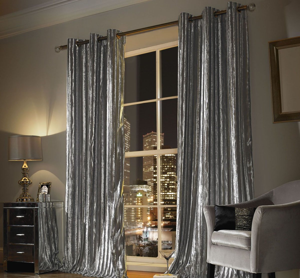 22. Бархатные серебристые шторы