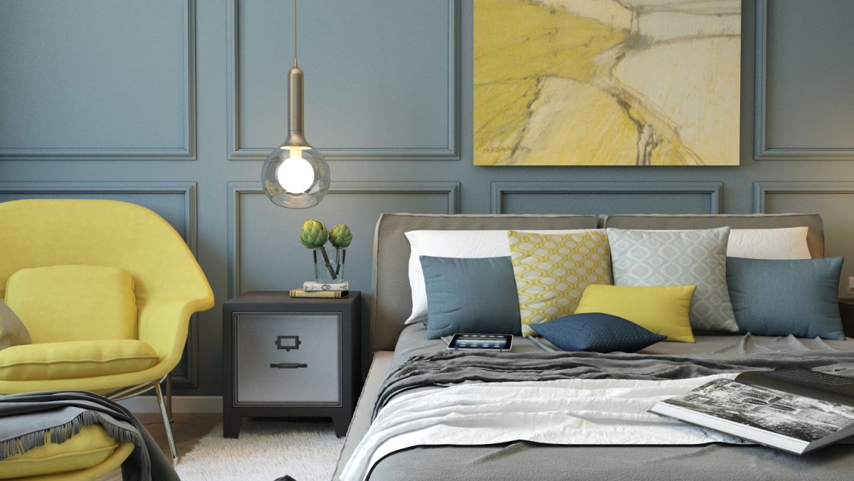 20. Серо синий интерьер спальни