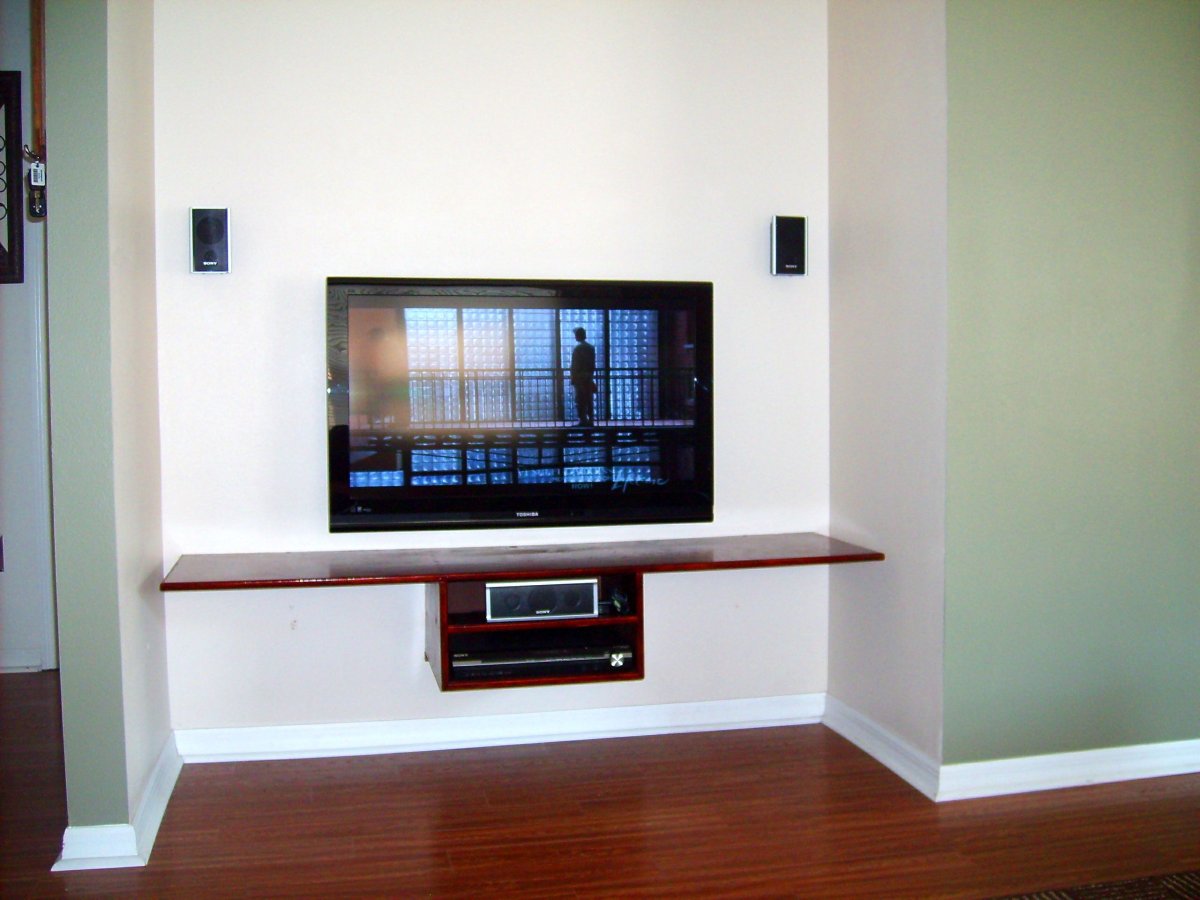 49. Телевизор на кронштейне в интерьере гостиной в углу