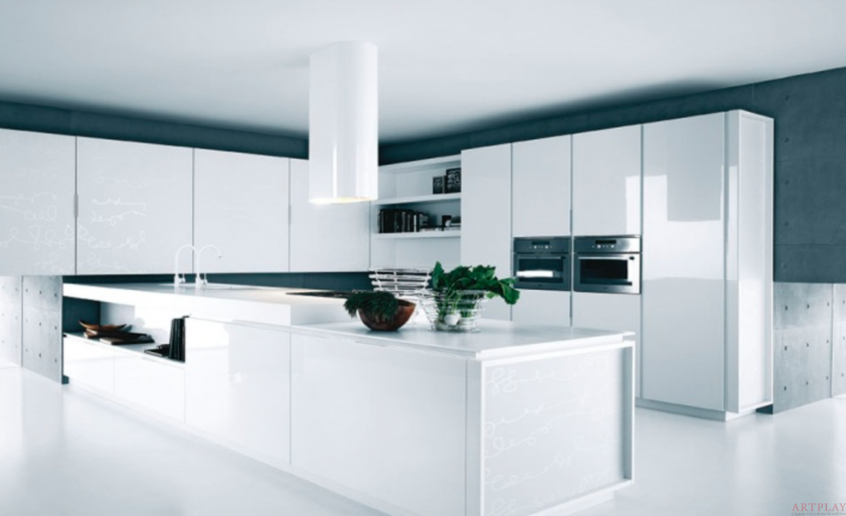 59. Кухонный хайтек мебель белый цвет