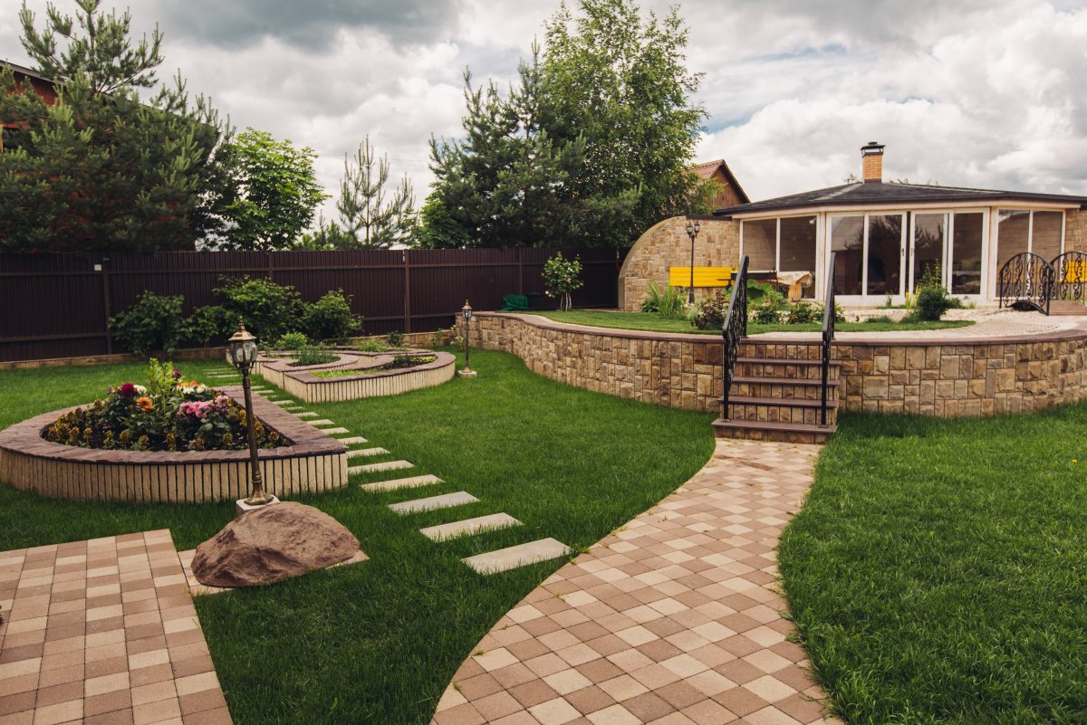 48. Красивые дома отделка диким камнем тротуарная плитка во дворе