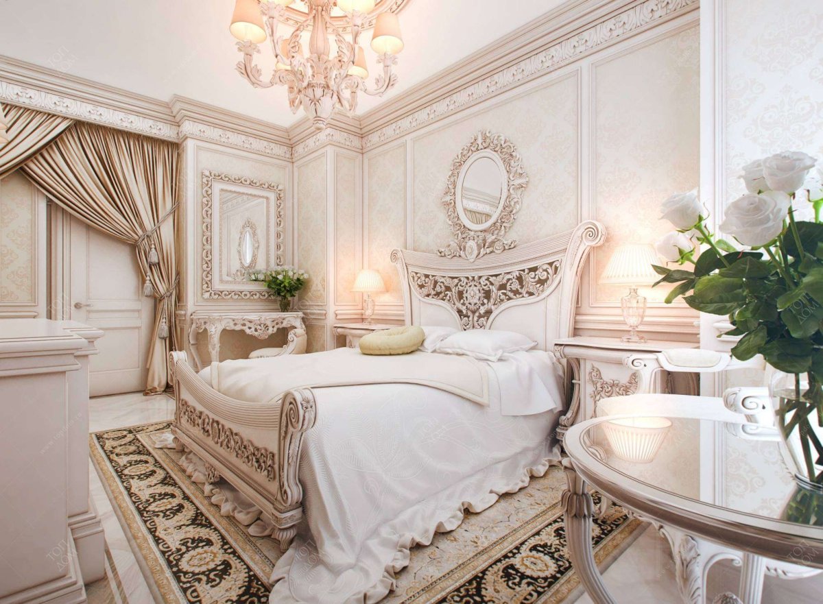 70. Спальня в стиле Барокко в светлых тонах