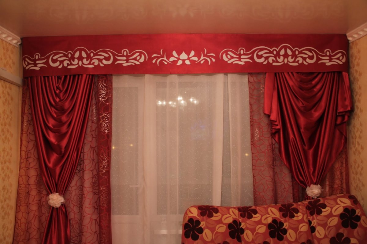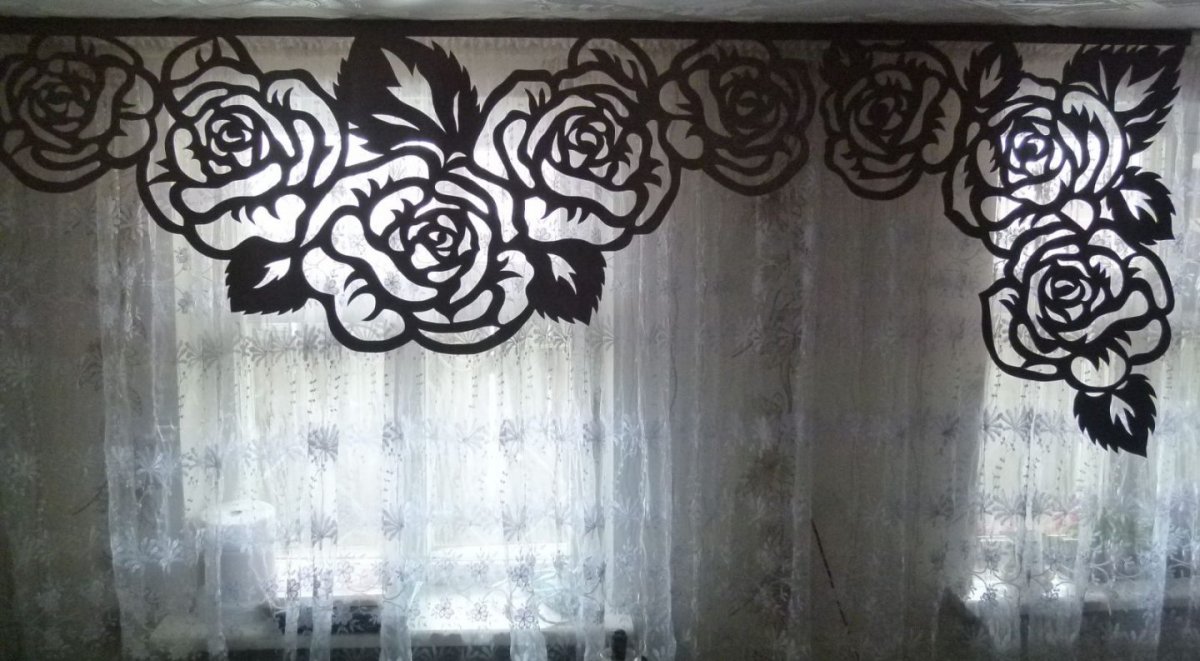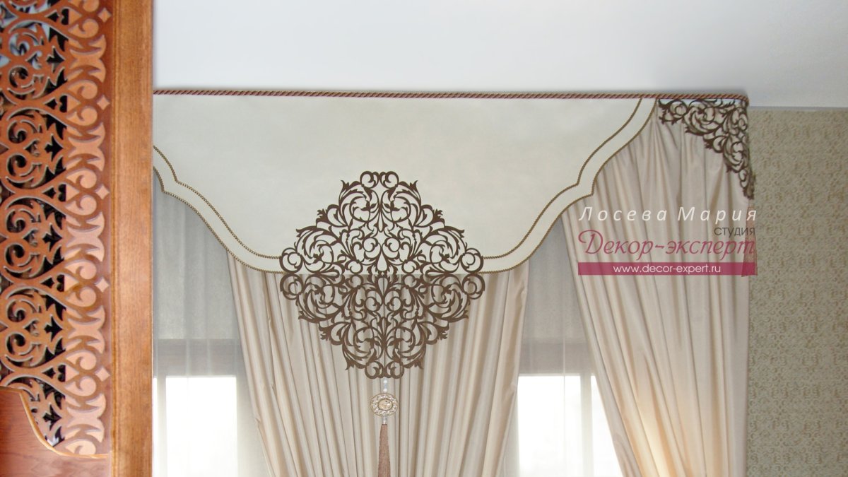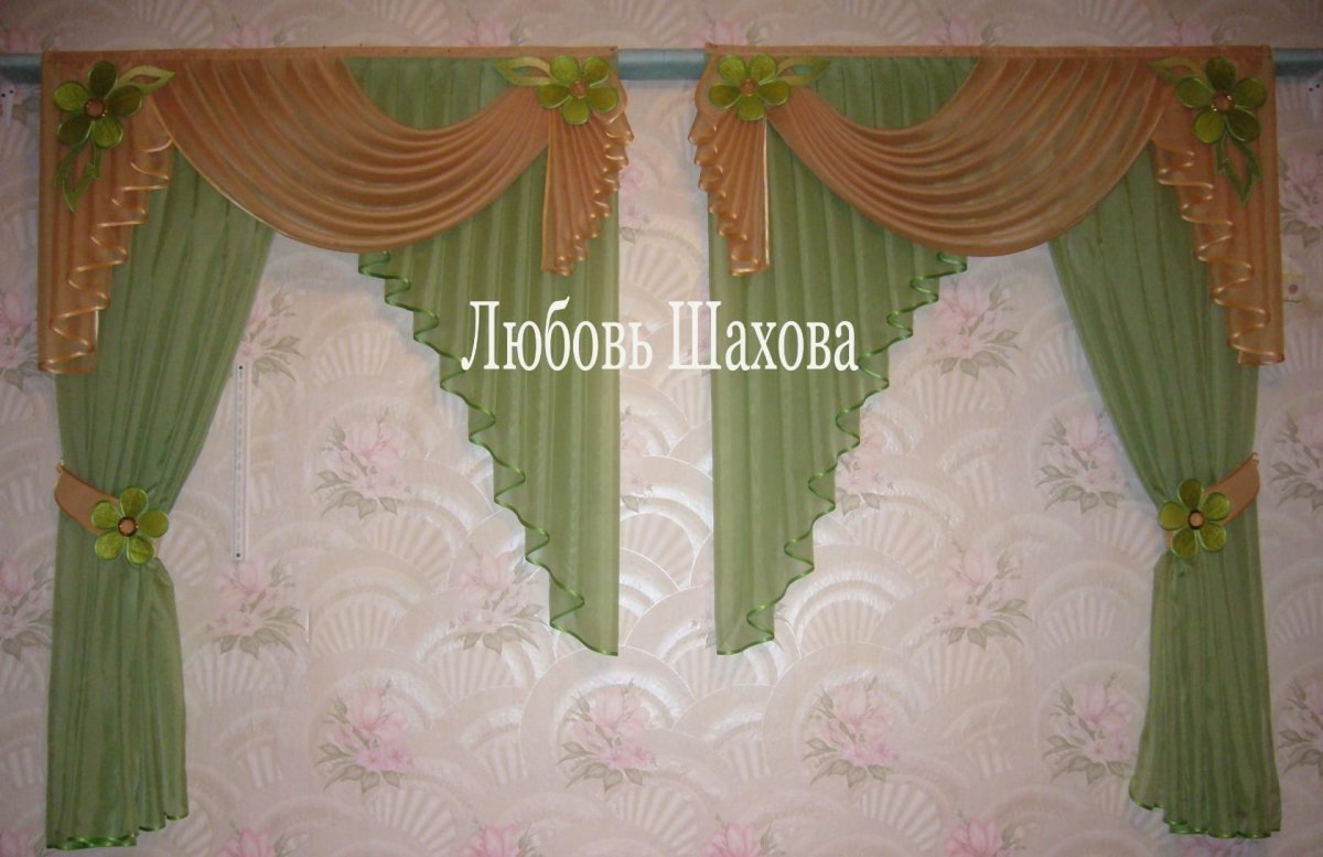 8. Шторы мята с ажурным ламбрекеном в кухню