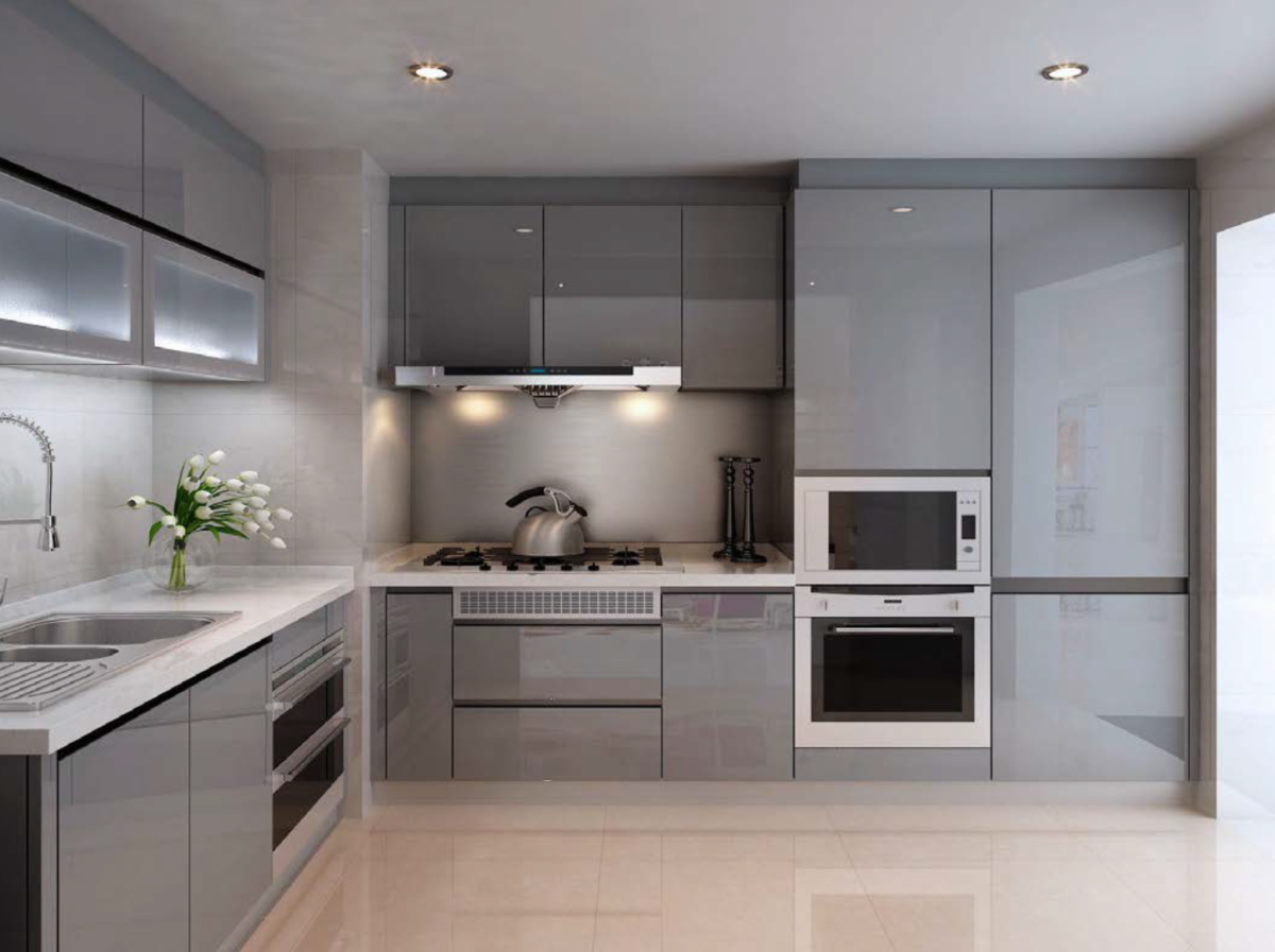 2. Светло серая кухня Хай тек