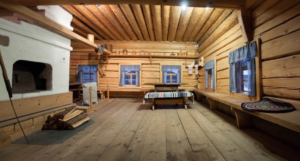 12. Русская изба в деревне внутри