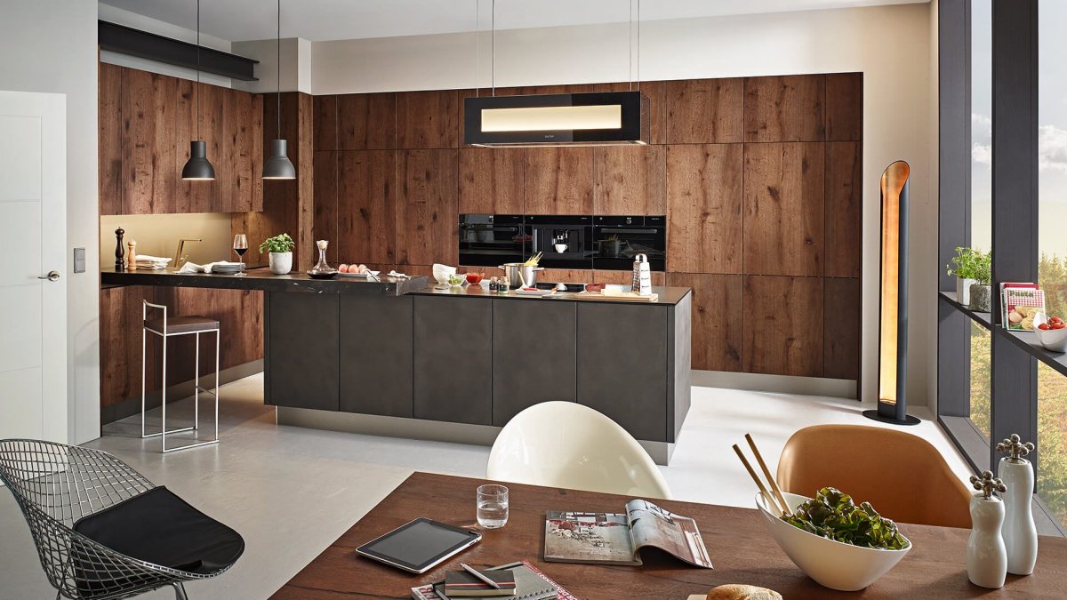 64. Кухня орех в интерьере